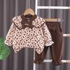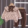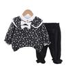 Traje elegante de estilo coreano para niñas, conjunto de dos piezas con top y pantalones tobilleros y cuello de muñeca floral de moda para primavera y otoño para niños