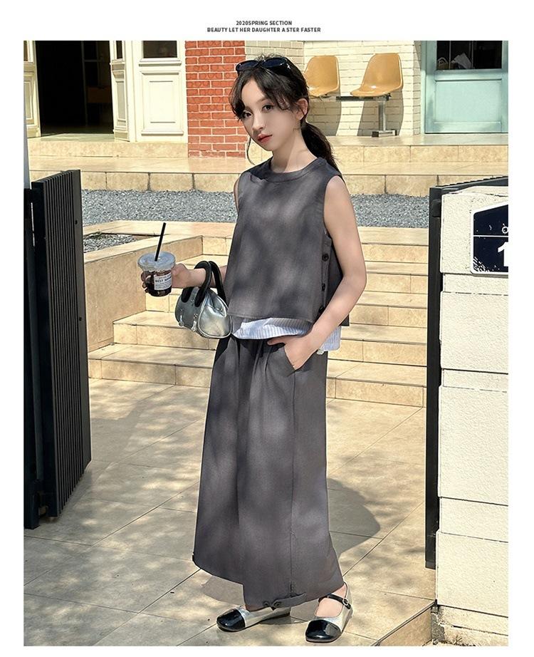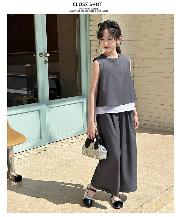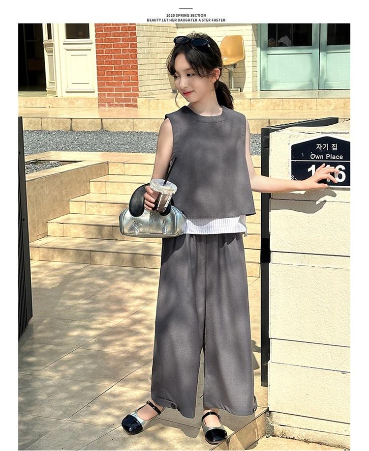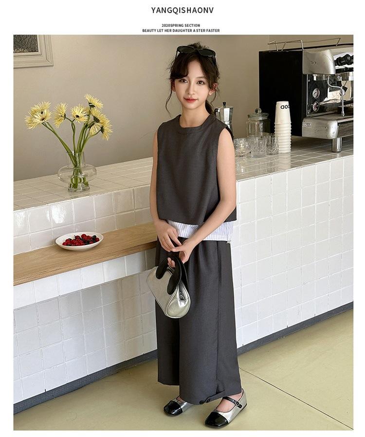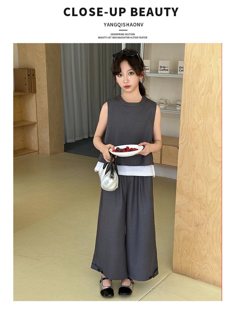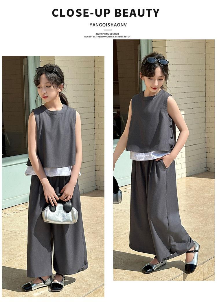 Traje de verano para niñas 2025, nuevo estilo, moda de verano, pantalones finos grandes sin mangas para niños, conjunto de dos piezas