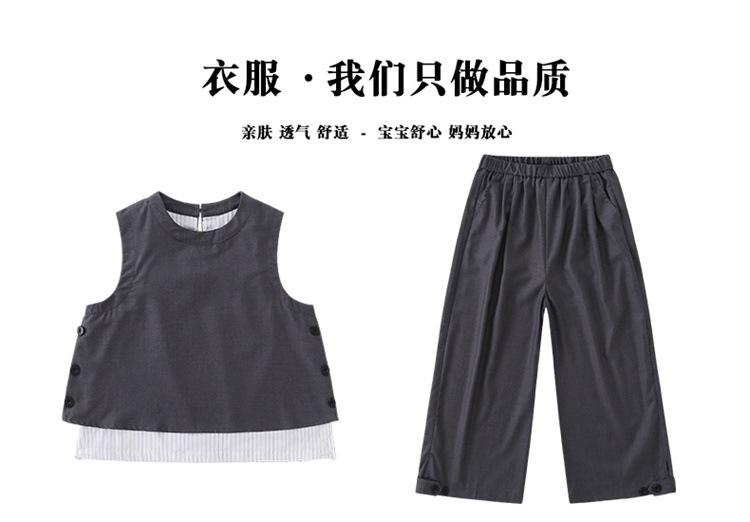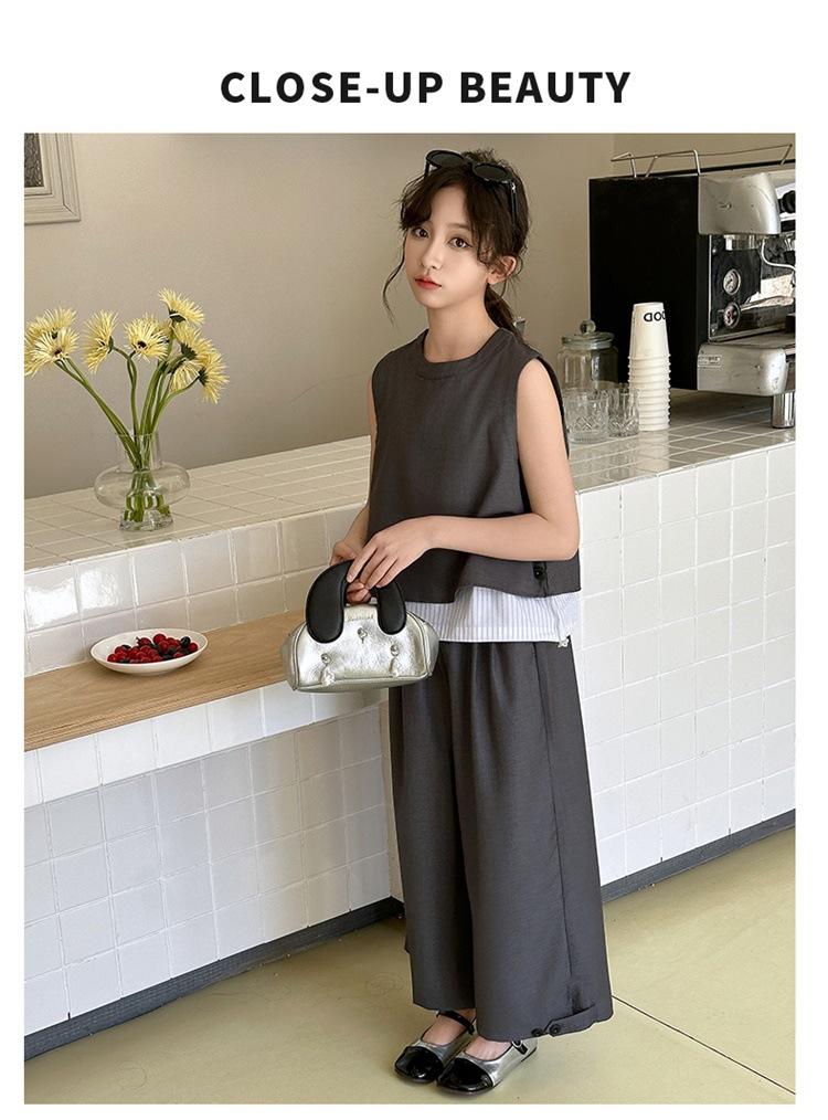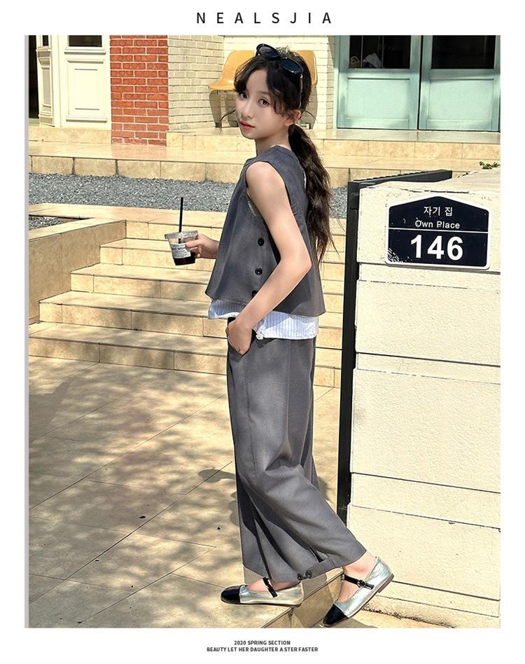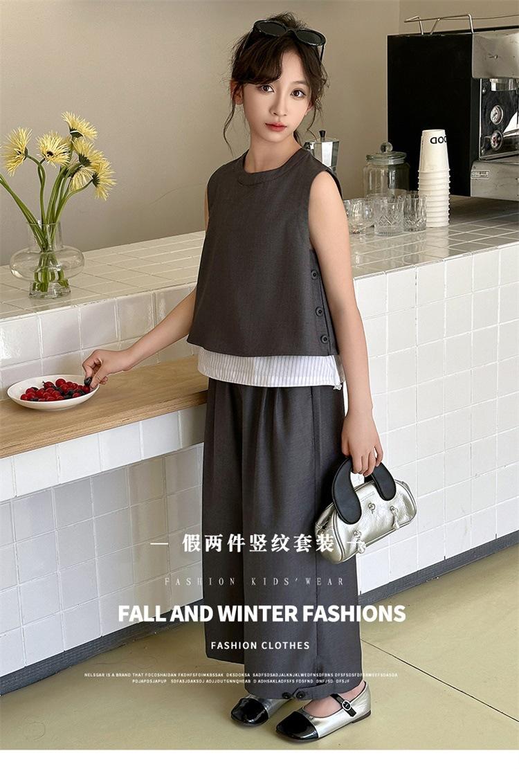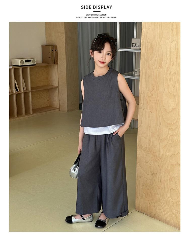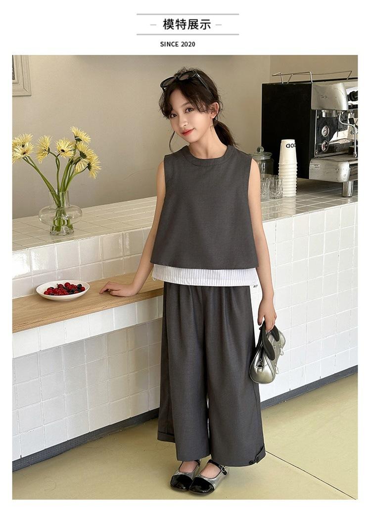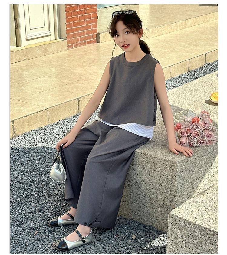 Traje de verano para niñas 2025, nuevo estilo, moda de verano, pantalones finos grandes sin mangas para niños, conjunto de dos piezas