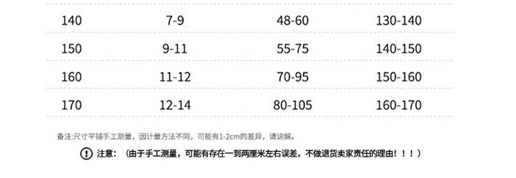 120cm, 130cm, 140cm, 150cm, 160cm, 170cm