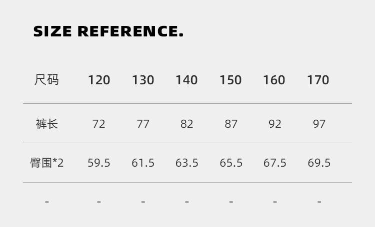 120cm, 130cm, 140cm, 150cm, 160cm, 170cm