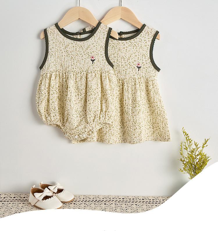 Ropa de Pedos Floral Envolvente Sin Mangas para Niñas Casual Verano Infantil Harper Verano Nuevo Estilo Infantil Bebé Traje Delgado Enterizo