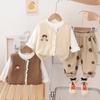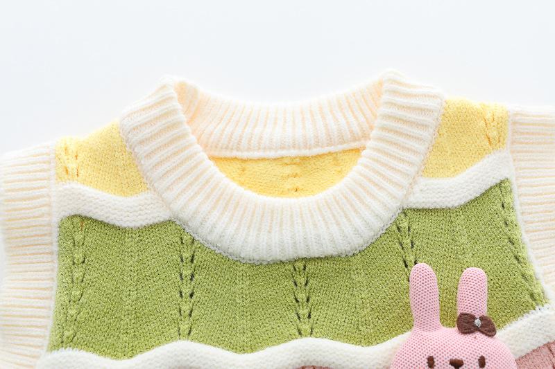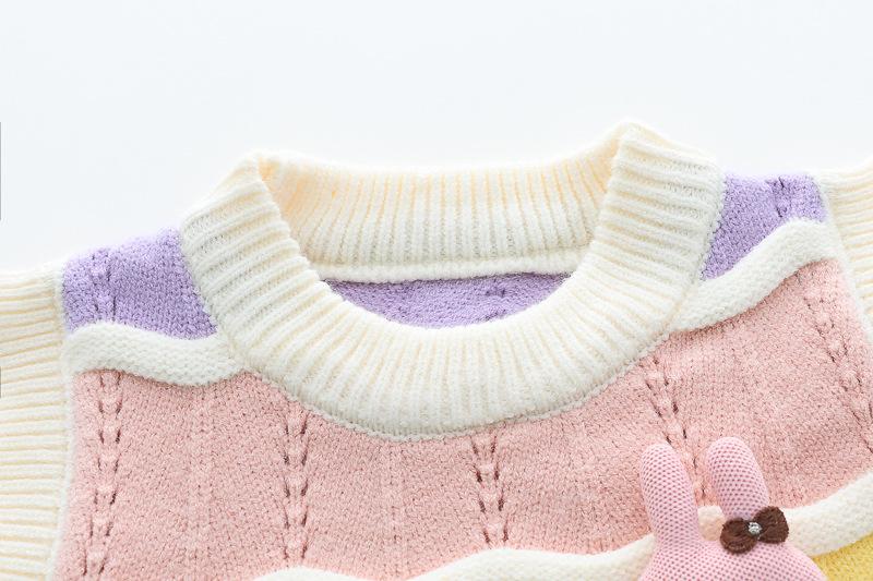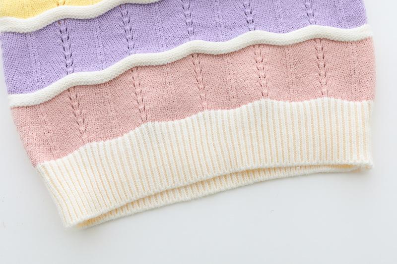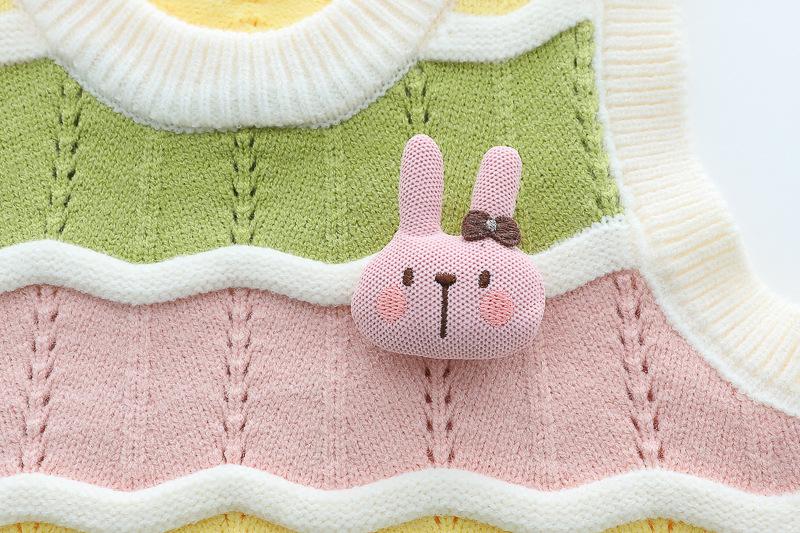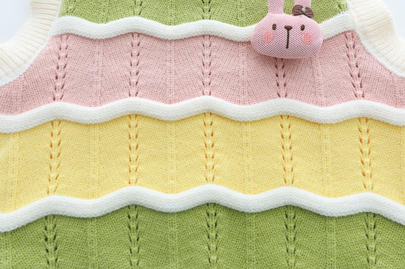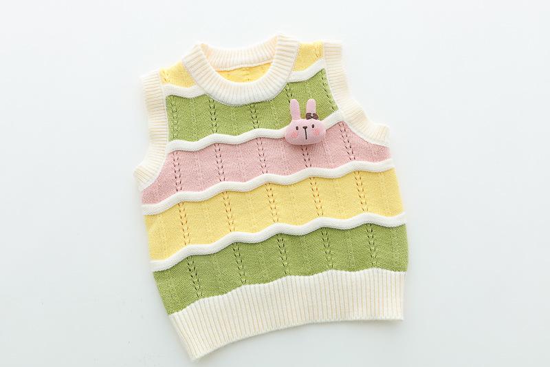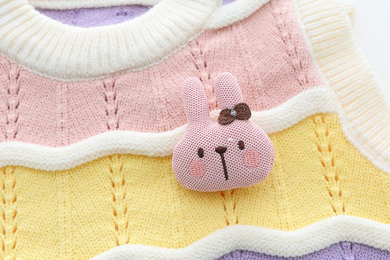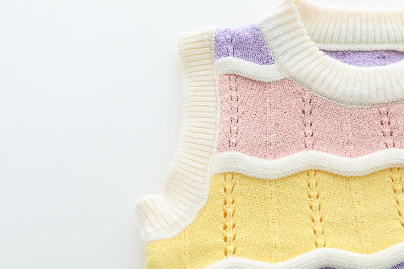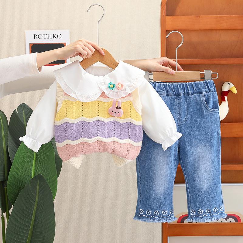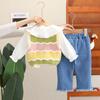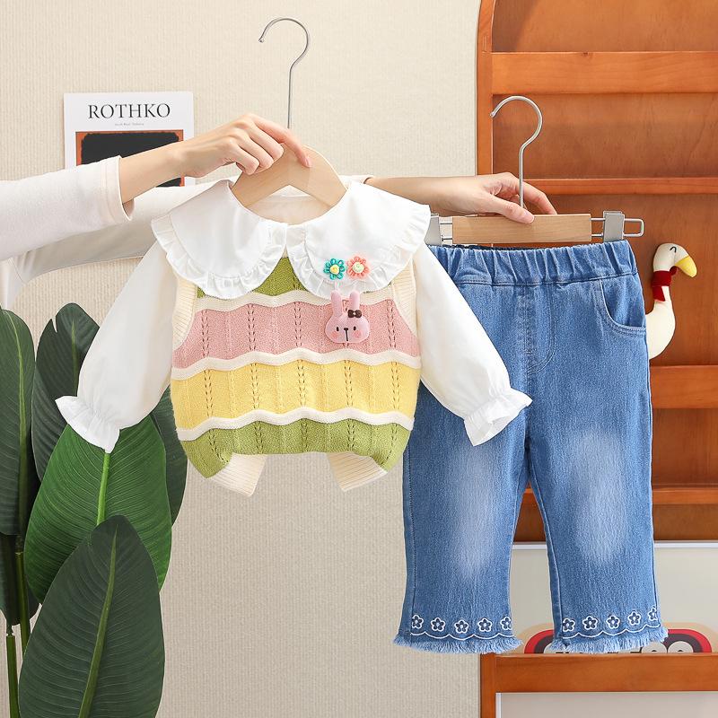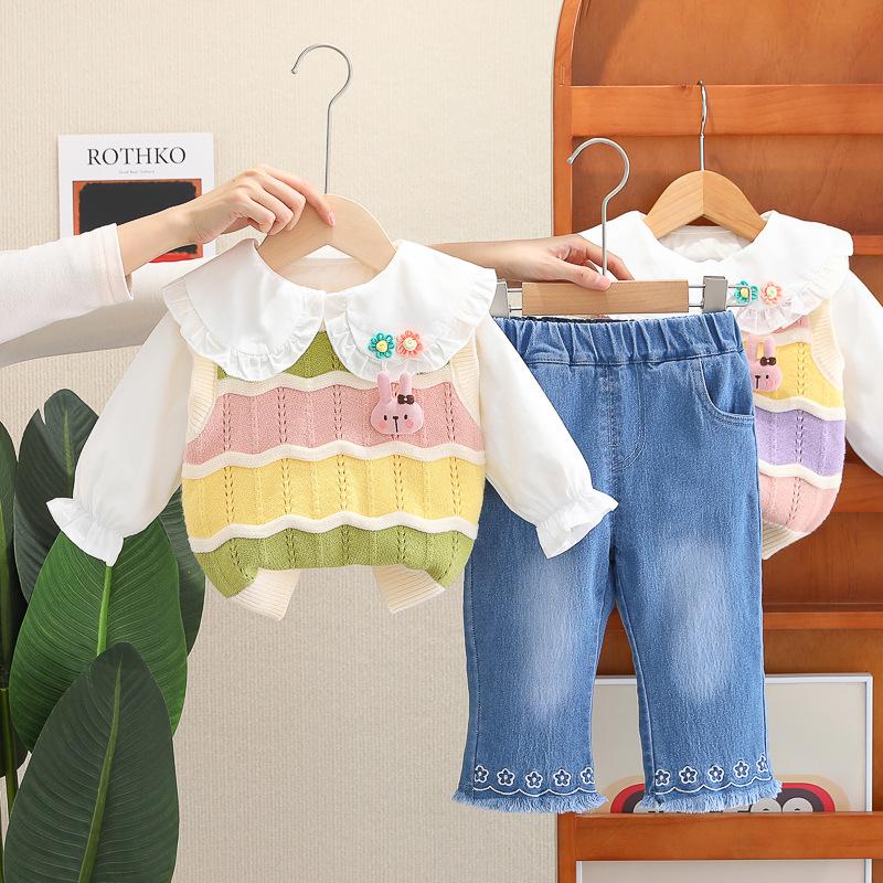 Traje para Niñas 2025 Nuevo Primavera y Otoño Chaleco de Suéter Rayado Colorido para Niños Ropa de Bebé de Moda Conjunto de Tres Piezas para Niñita