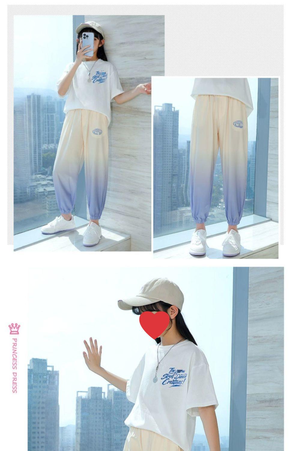 Compra Traje deportivo de verano para niñas de estilo coreano, popular en Internet, conjunto de dos piezas con pantalones casuales y top de moda elegante para niños de 2024. al por mayor en Joom.pro