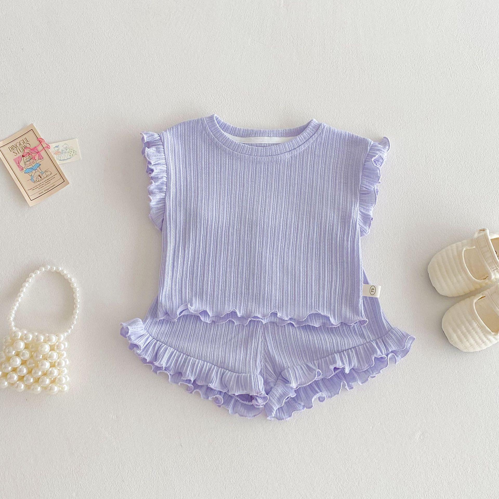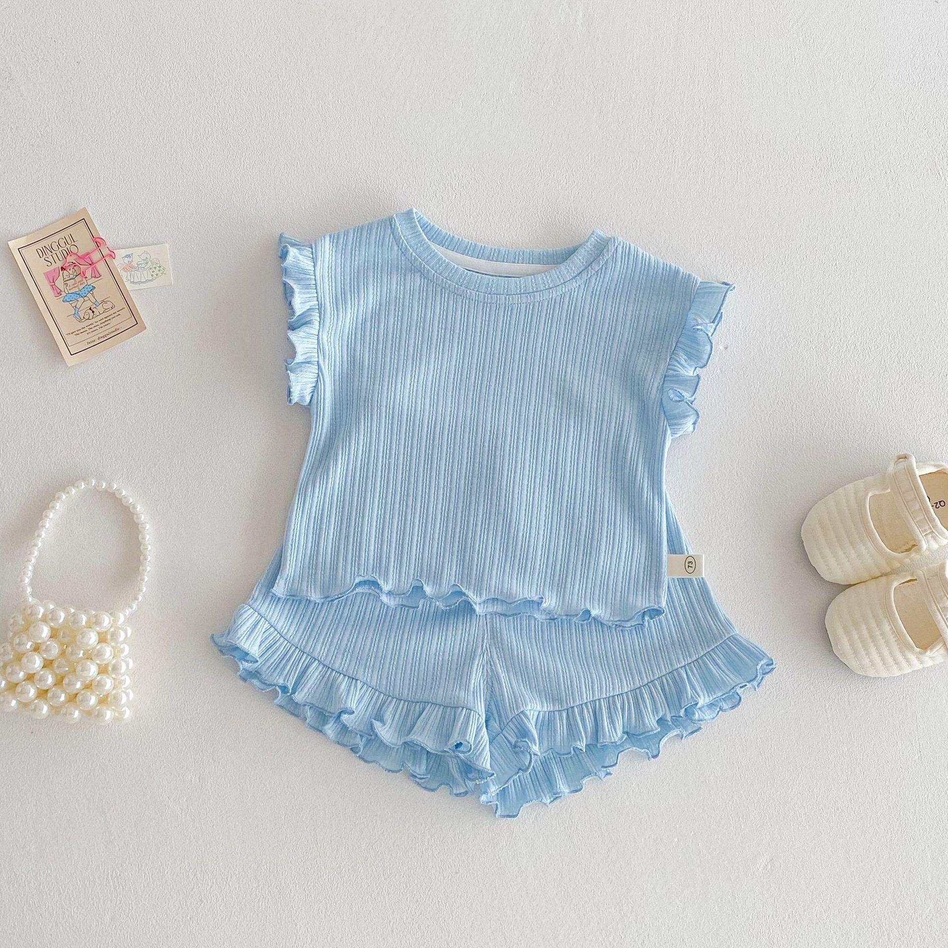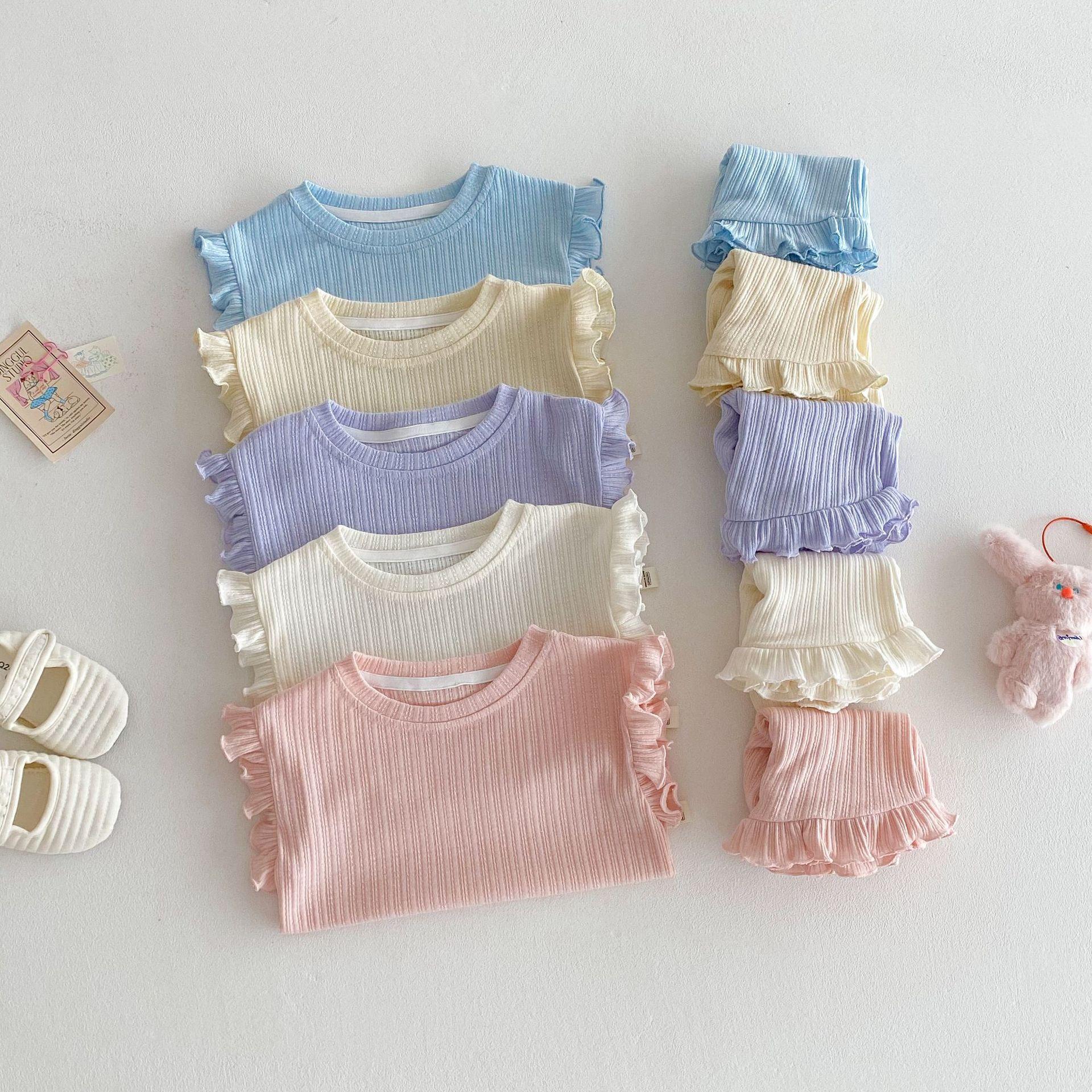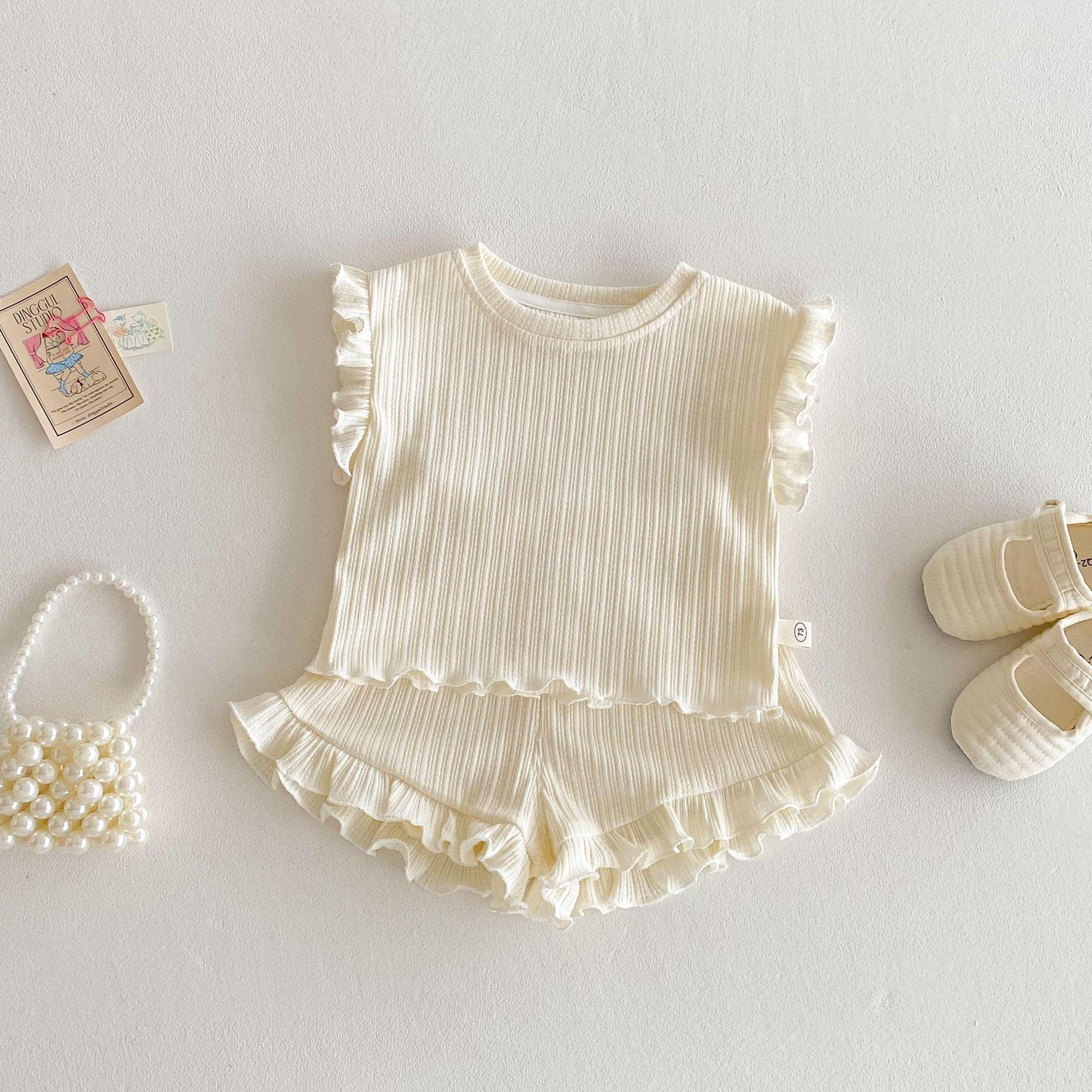 Traje de Verano para Bebé para Niñas, Chaleco con Dobladillo de Oreja, Elegante Chaleco y Pantalones Cortos para Bebé Niñas, Conjunto de Verano de Dos Piezas