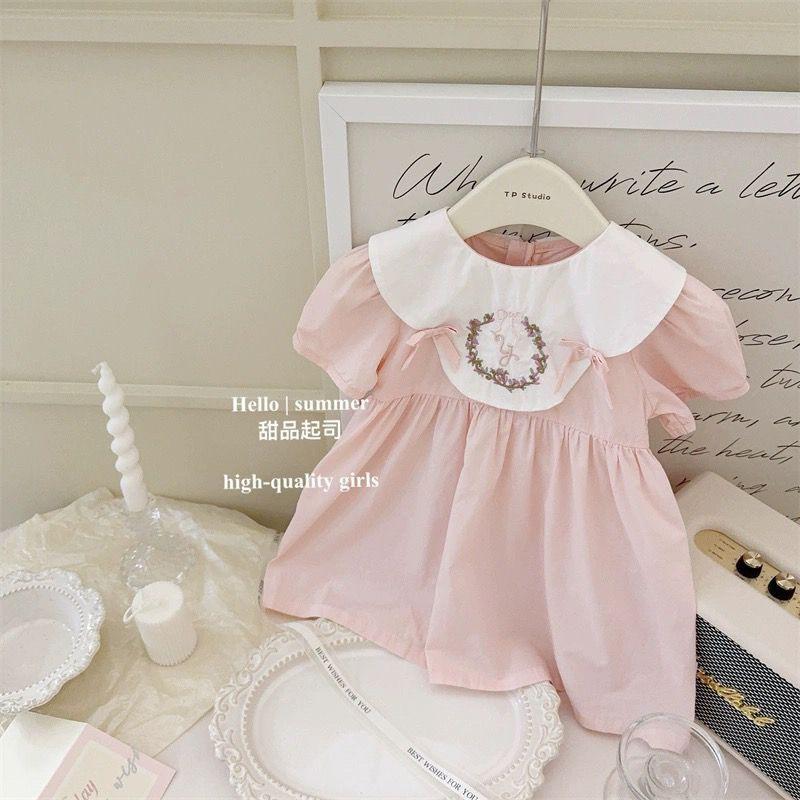 Vestido de verano para niñas, estilo occidental, con personalidad infantil, moderno, dulce y fresco, con lazo bordado de flores, vestido de princesa.