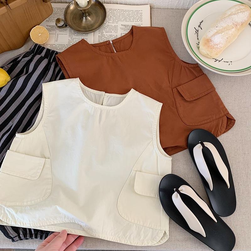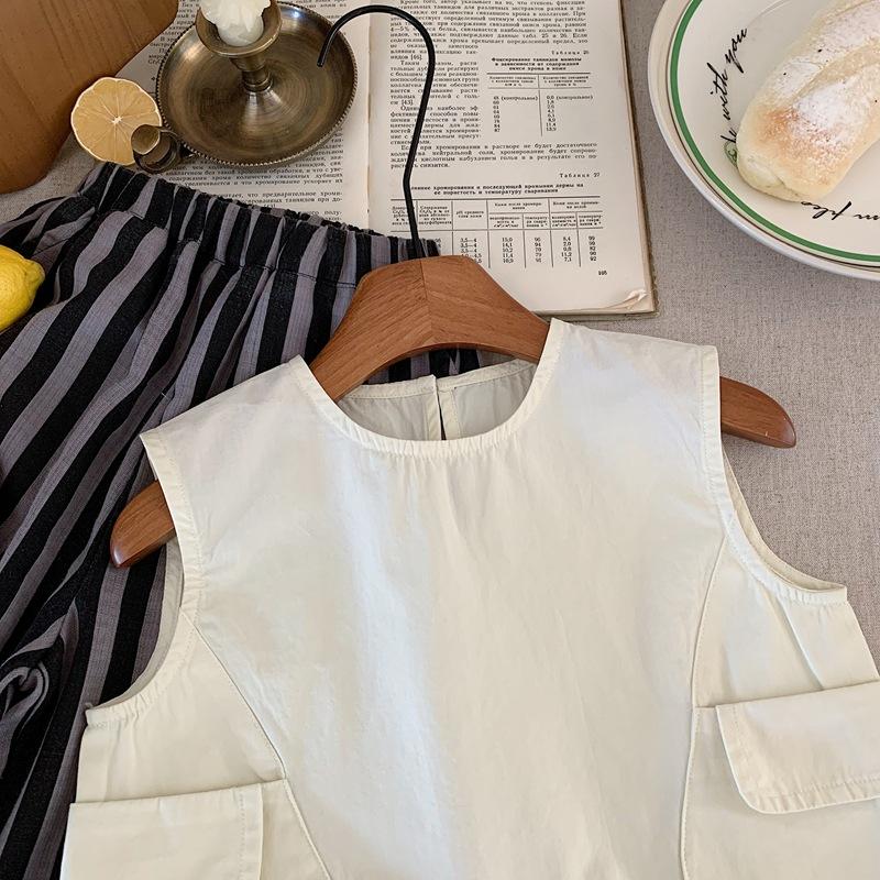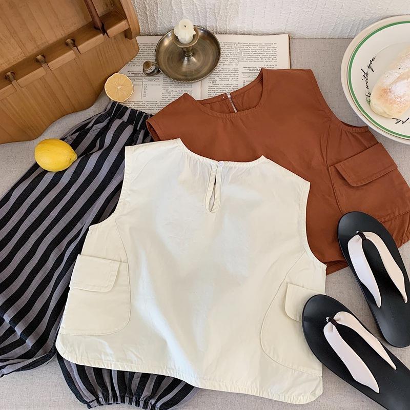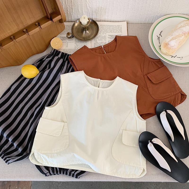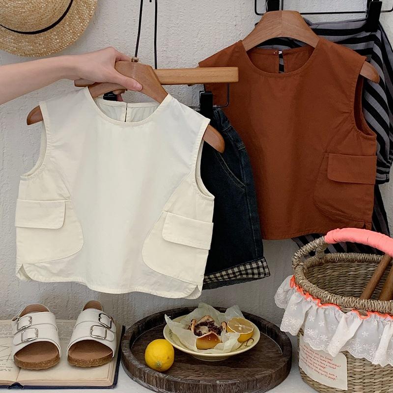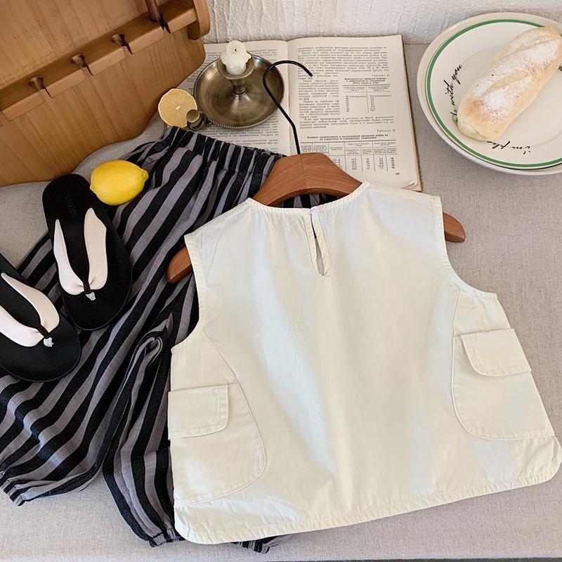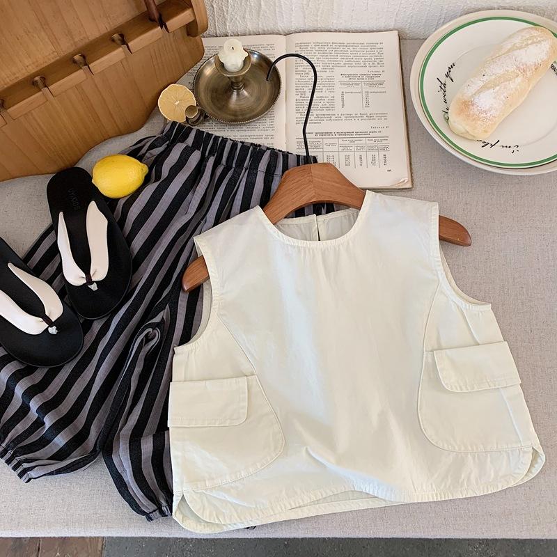 Chaleco para niño estilo coreano Tooling 2025 Verano Elegante Suelto Combinable Moderno Camisa sin mangas para niños