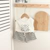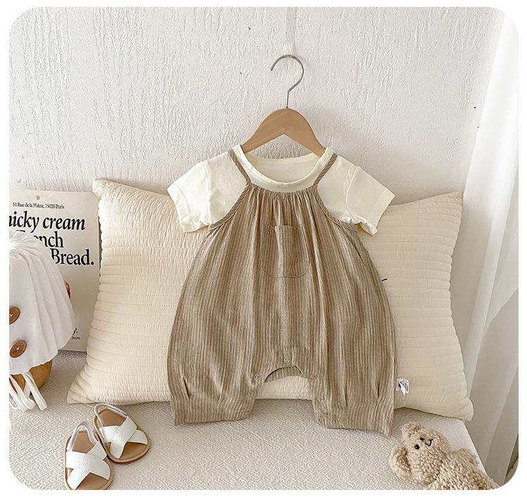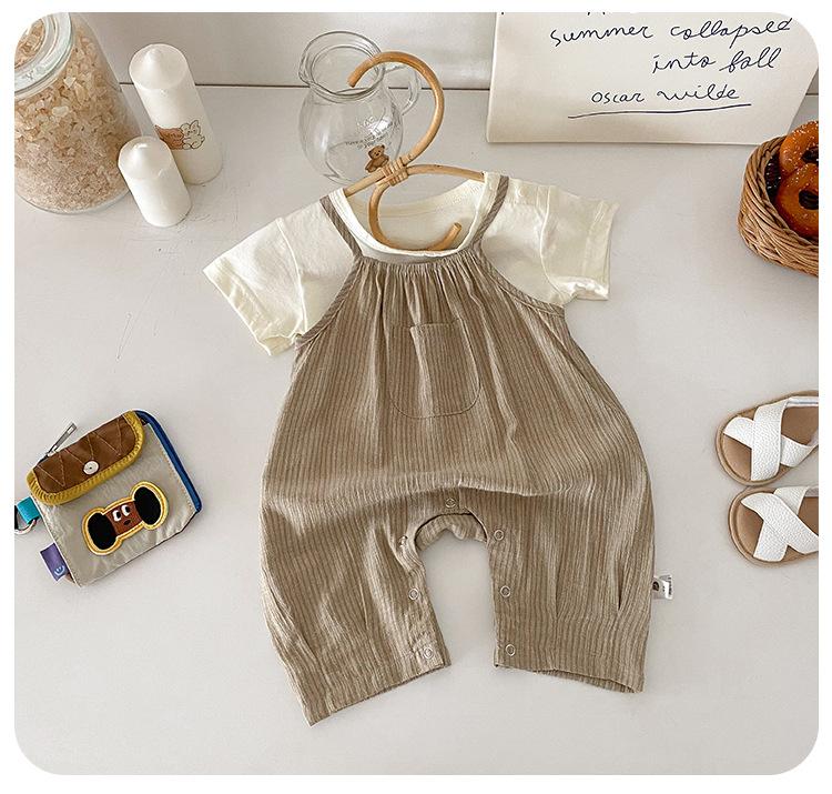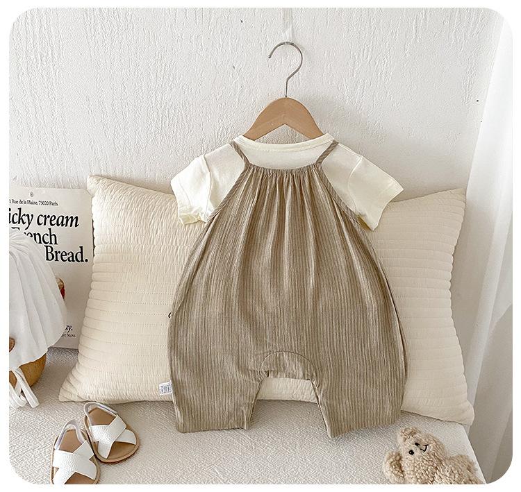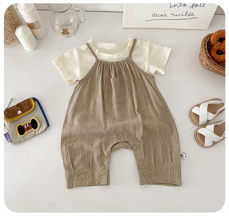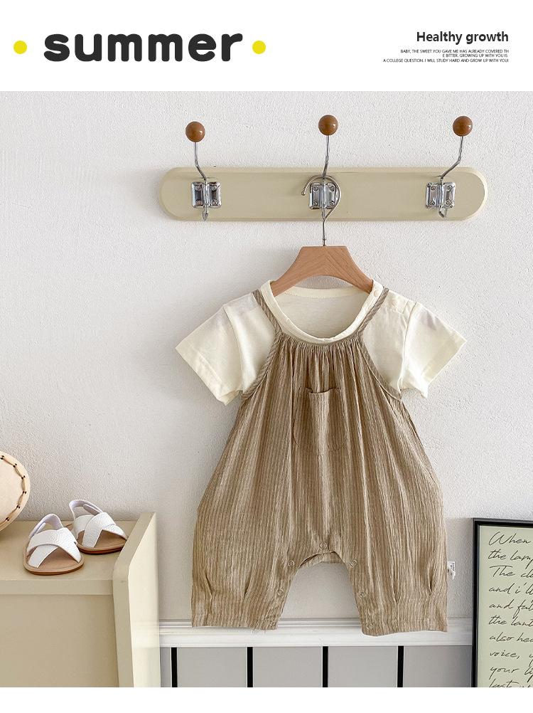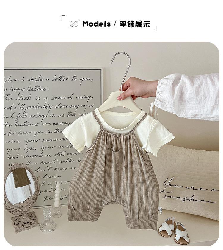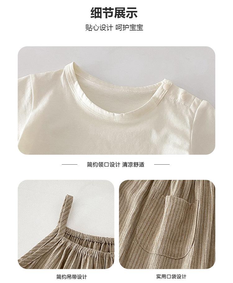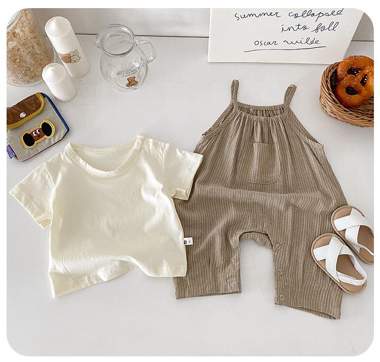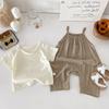 Producto Nuevo Ropa de Verano para Bebé Ropa de Verano para Niños Traje de Pantalón con Tirantes Fino Coreano con Abertura Conjunto de Dos Piezas
