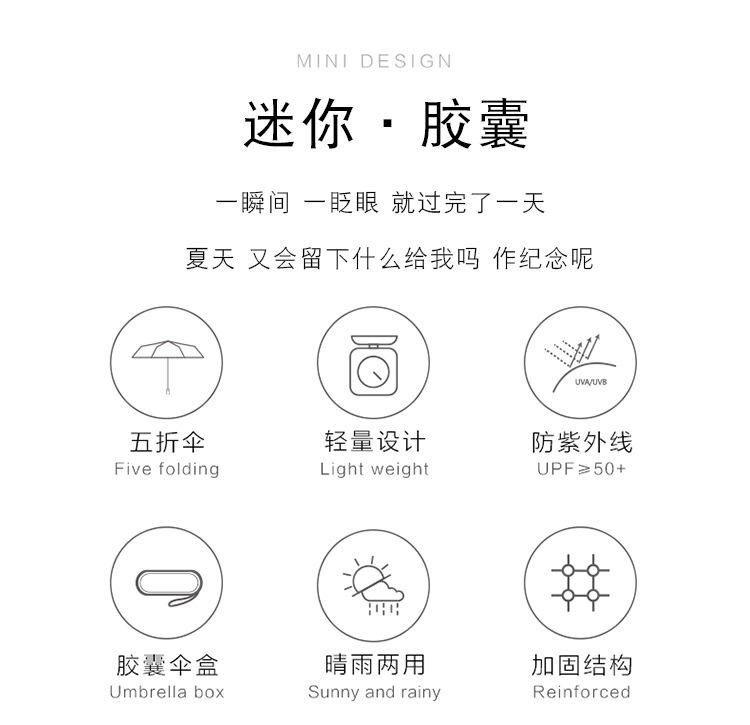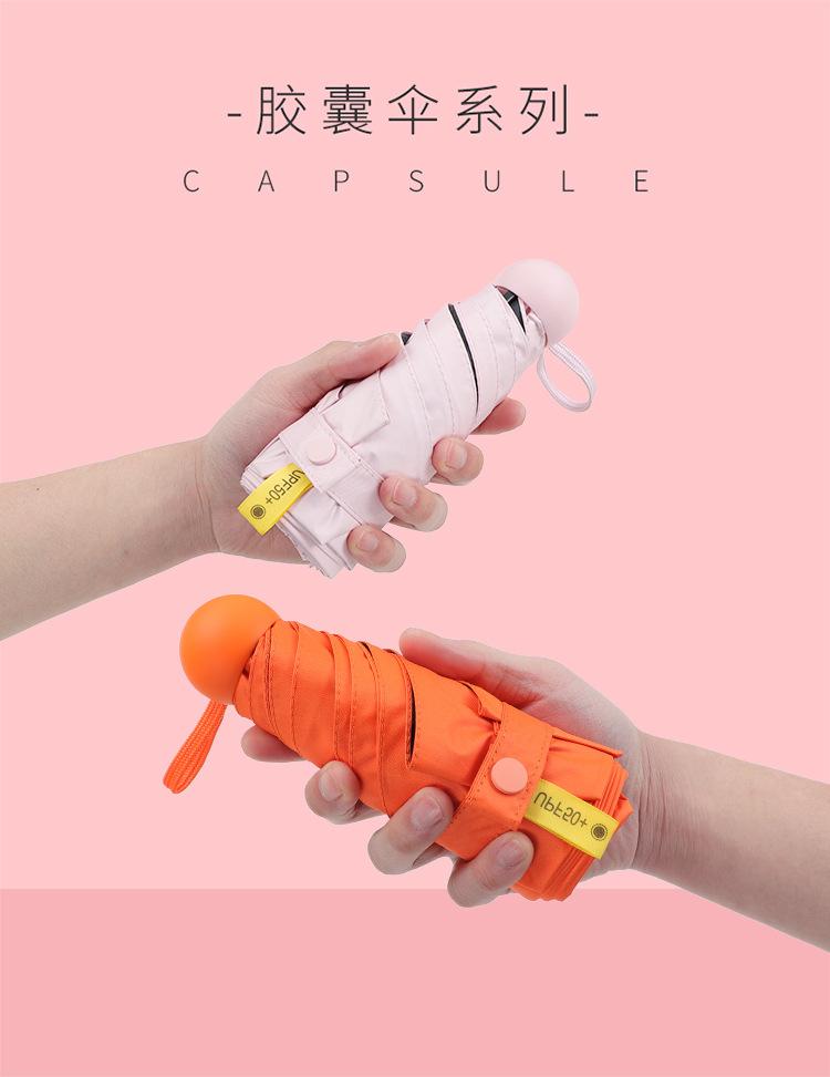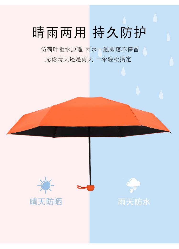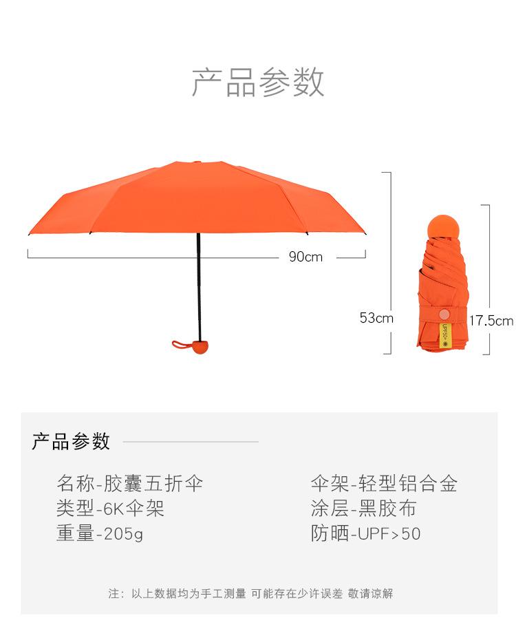 Paraguas portátil ultraligero y compacto de cinco pliegues, negro, goma, protector solar, protección UV, a prueba de lluvia, doble propósito, plegable tipo cápsula, paraguas para mujer, sombrilla