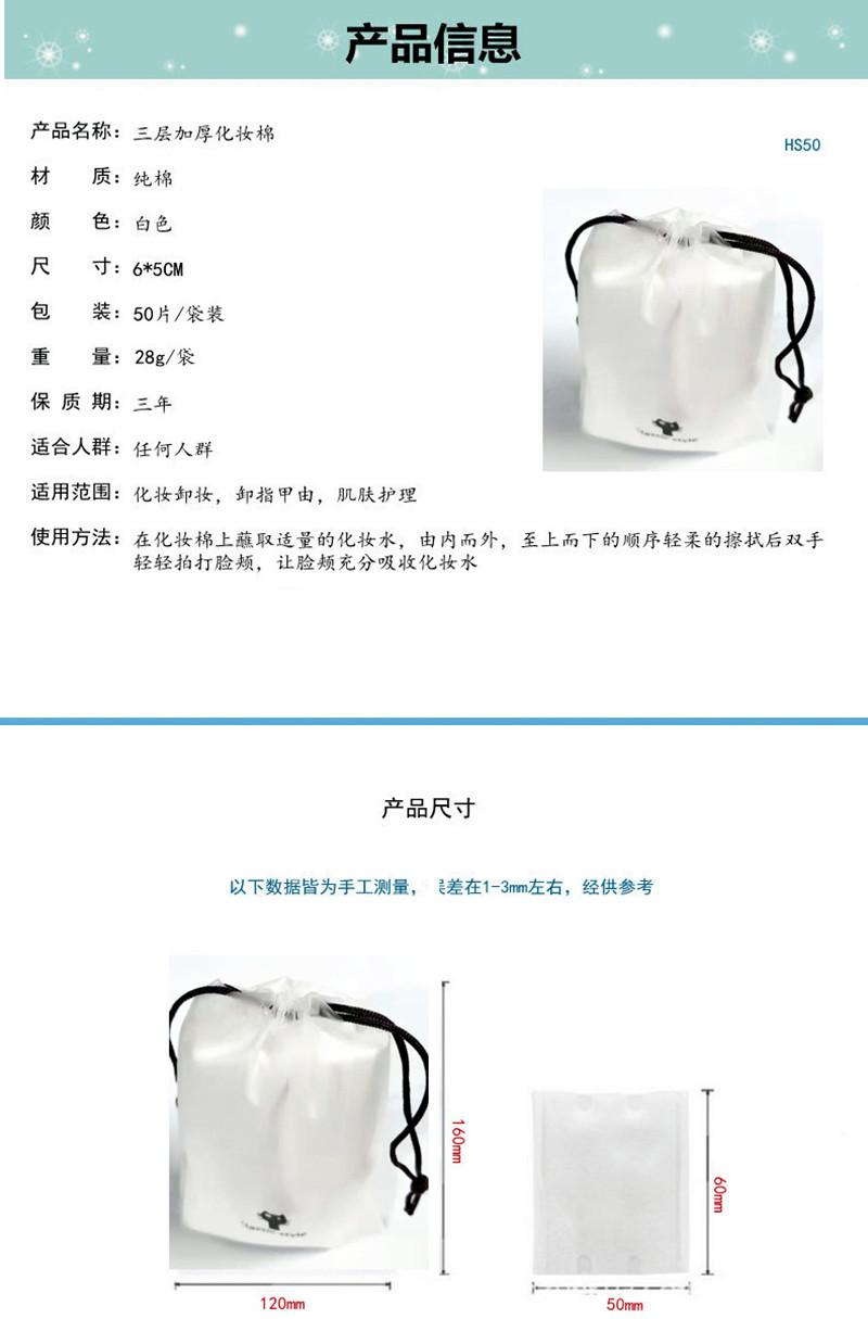 50 paquetes de algodón desmaquillante de tres capas, algodón desmaquillante, algodón grueso, algodón desmaquillante.