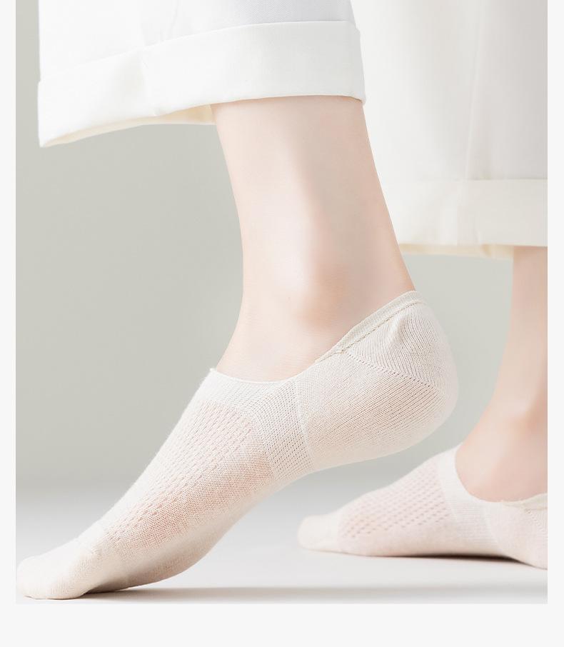 Calcetines náuticos de algodón puro para mujer, calcetines invisibles absorbentes del sudor y a prueba de olores, venta al por mayor, calcetines de algodón transpirables de malla fina para primavera y verano para mujer