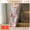 Camisón sexy con tirantes cruzados para mujer, estilo francés, de seda, estampado, fino y transpirable, para casa, 2025