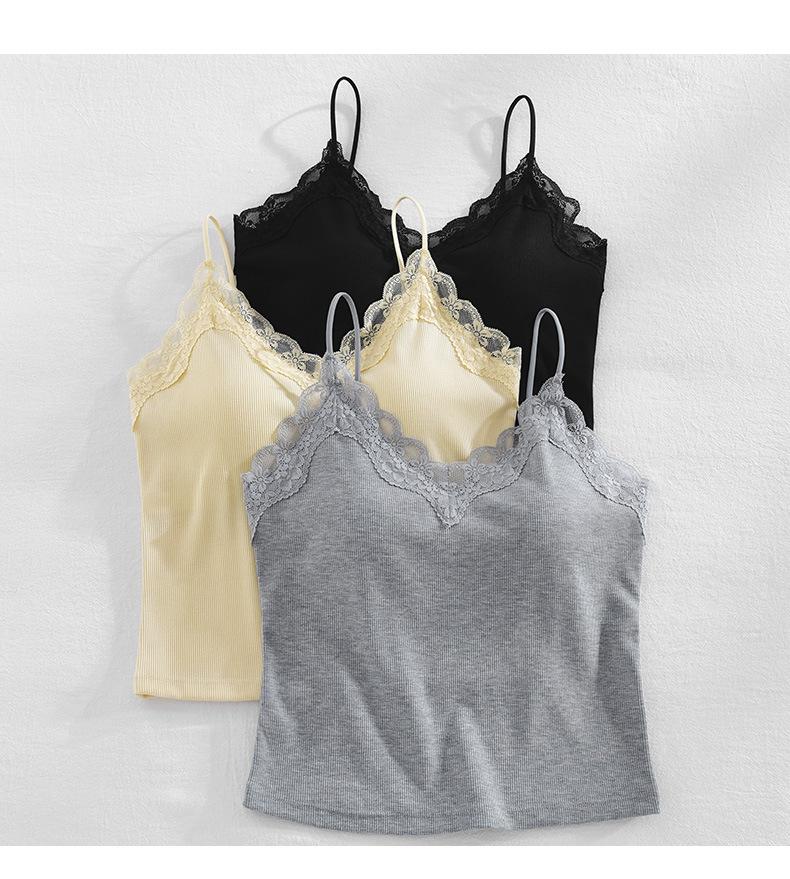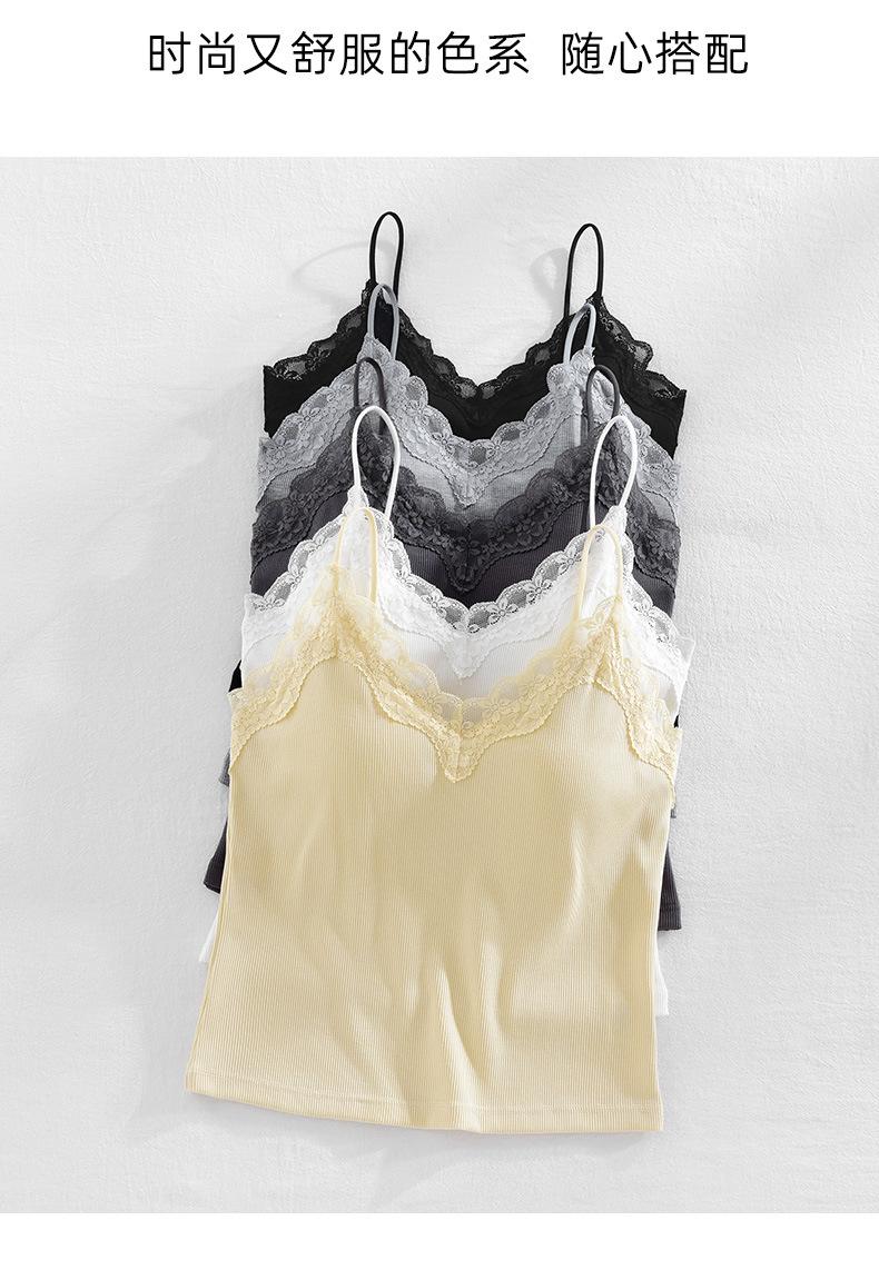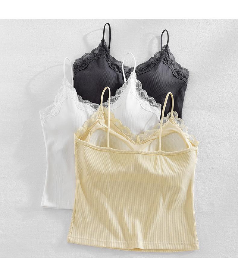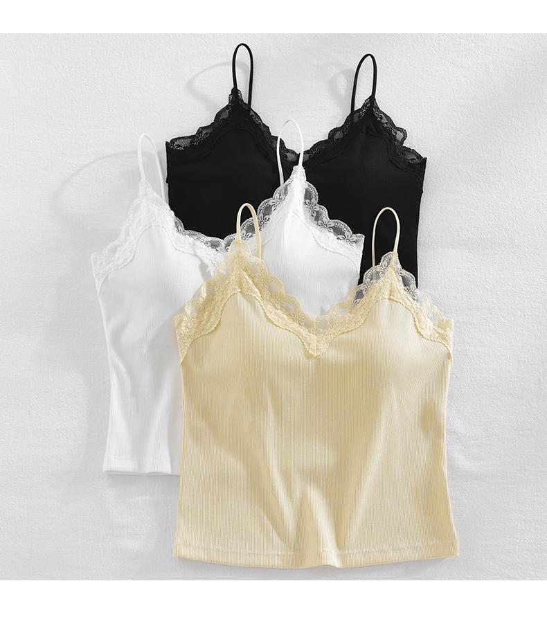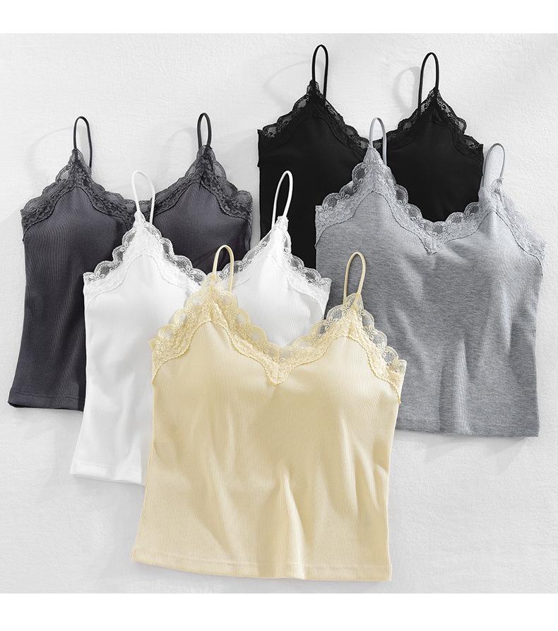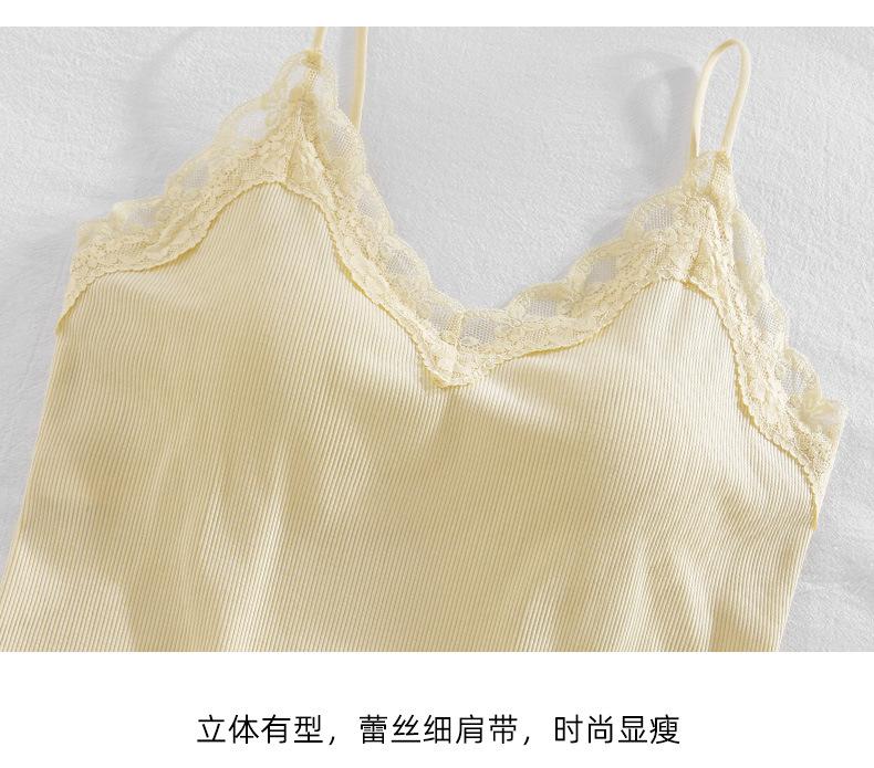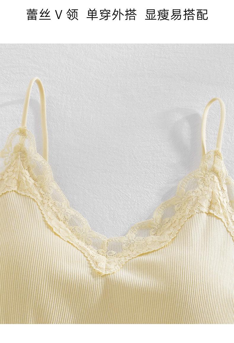Primavera Nuevo Encaje Cuello en V Tirante Fino Pequeño Hermoso Espalda Ropa Interior Sujetador de Mujer Chaleco de Una Pieza con Almohadilla en el Pecho para Verano