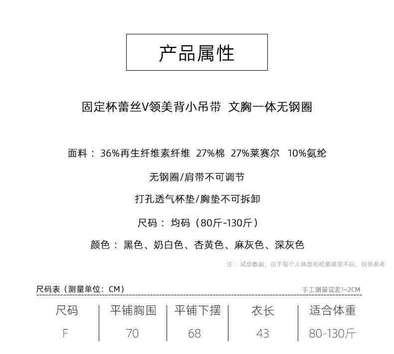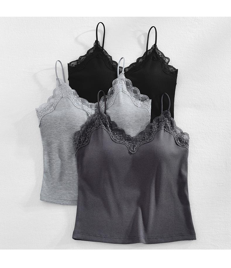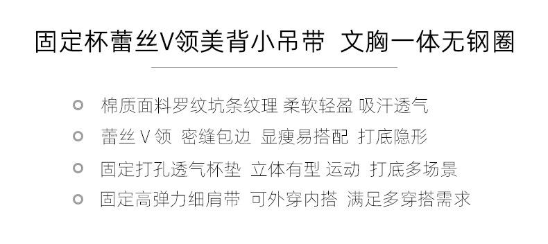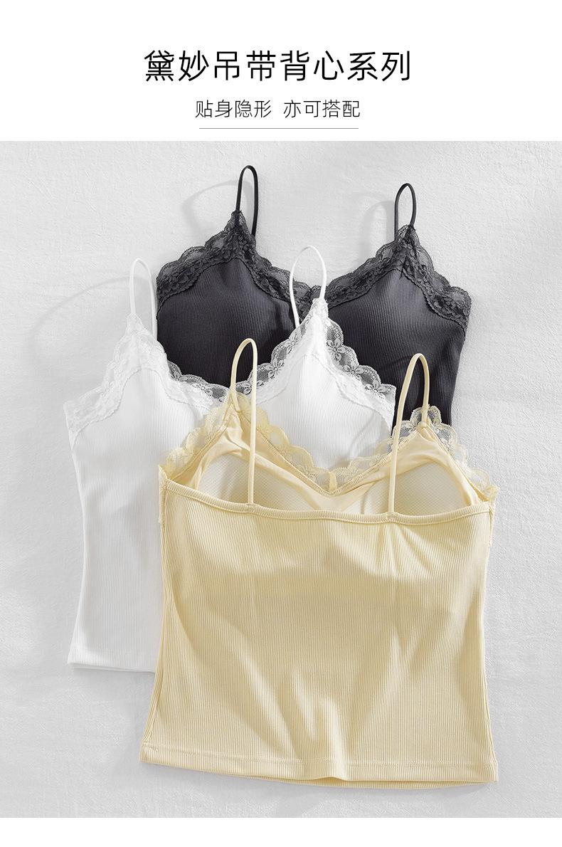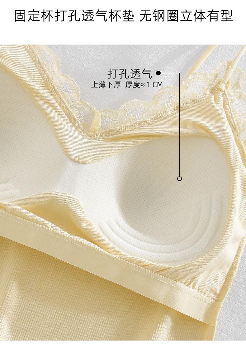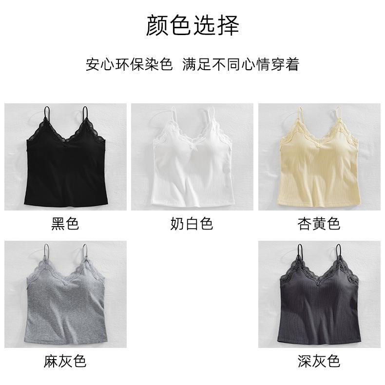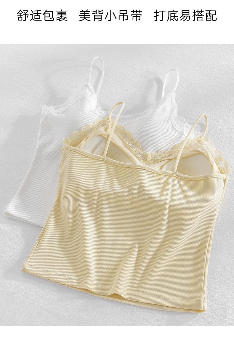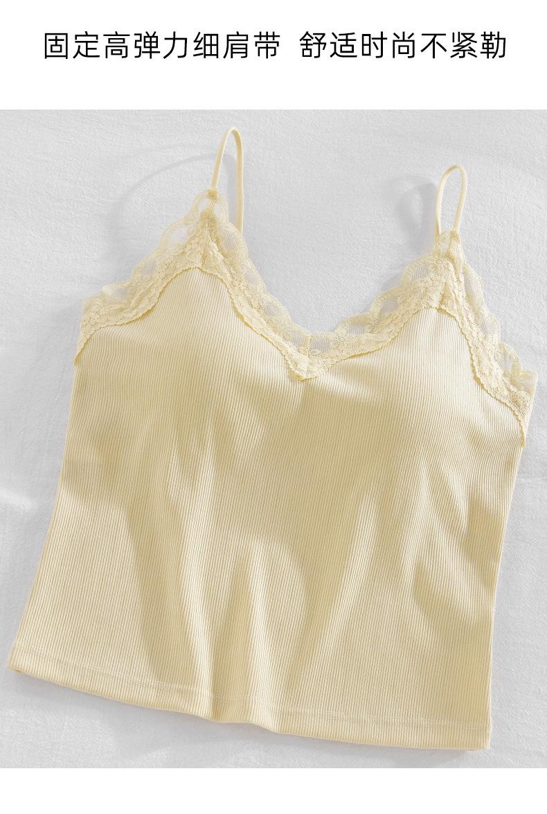 Primavera Nuevo Encaje Cuello en V Tirante Fino Pequeño Hermoso Espalda Ropa Interior Sujetador de Mujer Chaleco de Una Pieza con Almohadilla en el Pecho para Verano