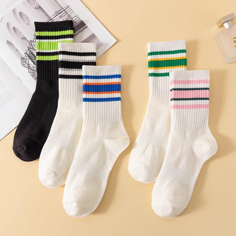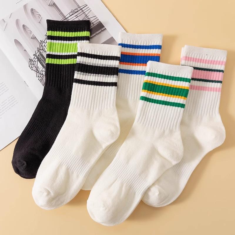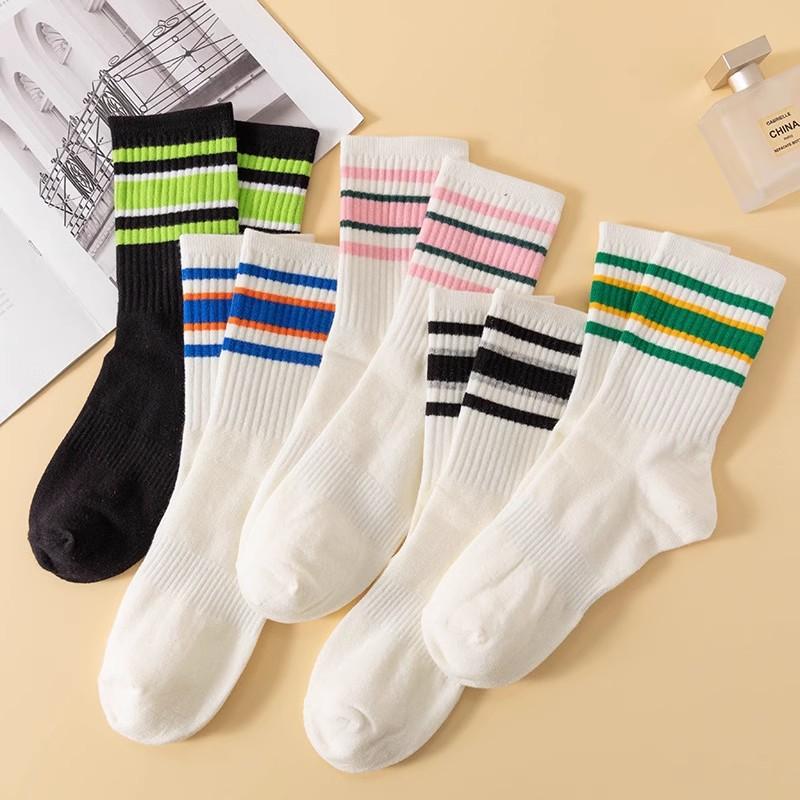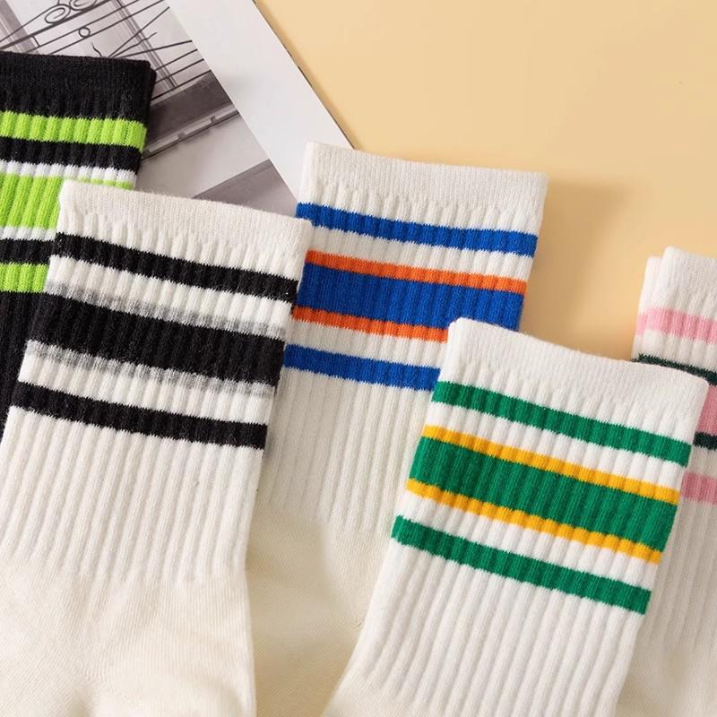 White socks pink stripes, White socks black stripes, White socks blue stripes, White socks green stripes, Blac...