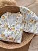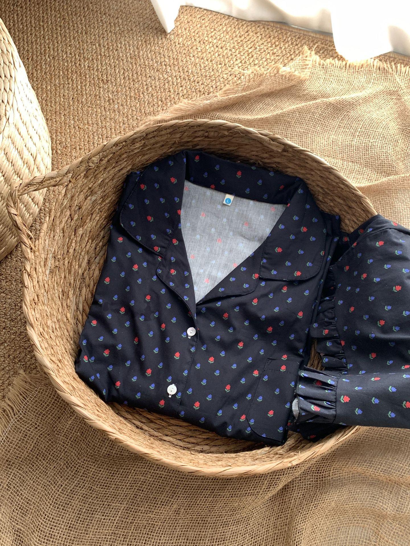 Black bottom small flower-woven cotton short-sleeved shorts