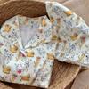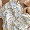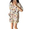 Conjunto de pijama de algodón tejido de manga corta y shorts con estampado de dibujos animados para mujer