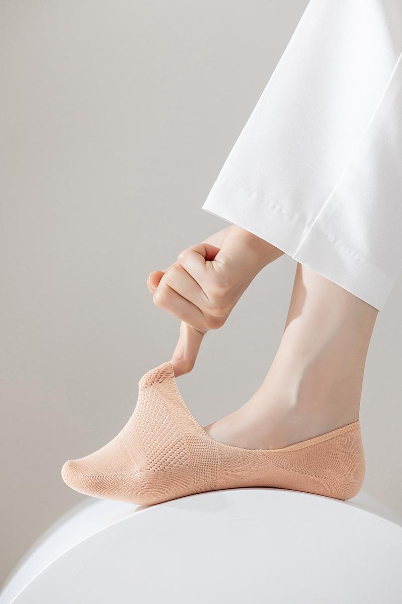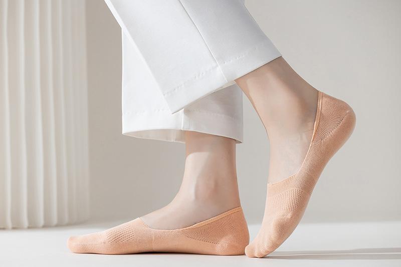 Punto de venta: Calcetines de algodón todo en uno, malla, silicona invisible, antideslizantes, costura sin varillas, ultrafinos para el verano.