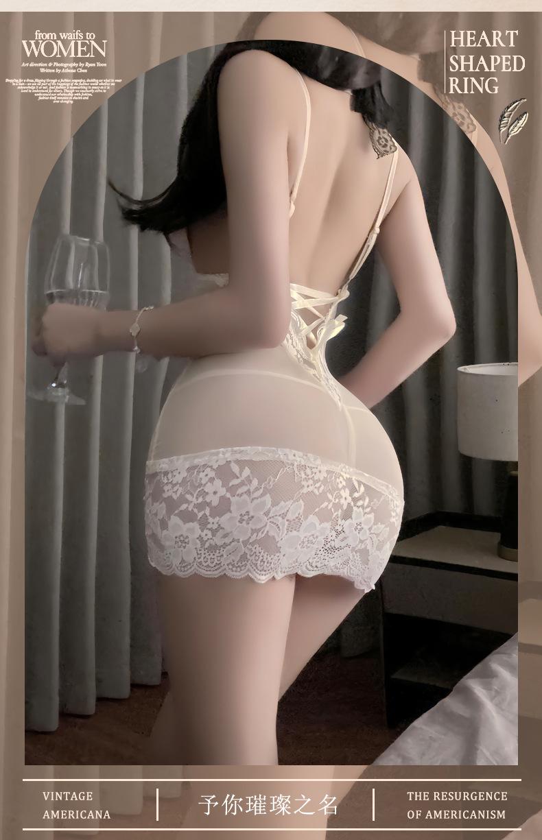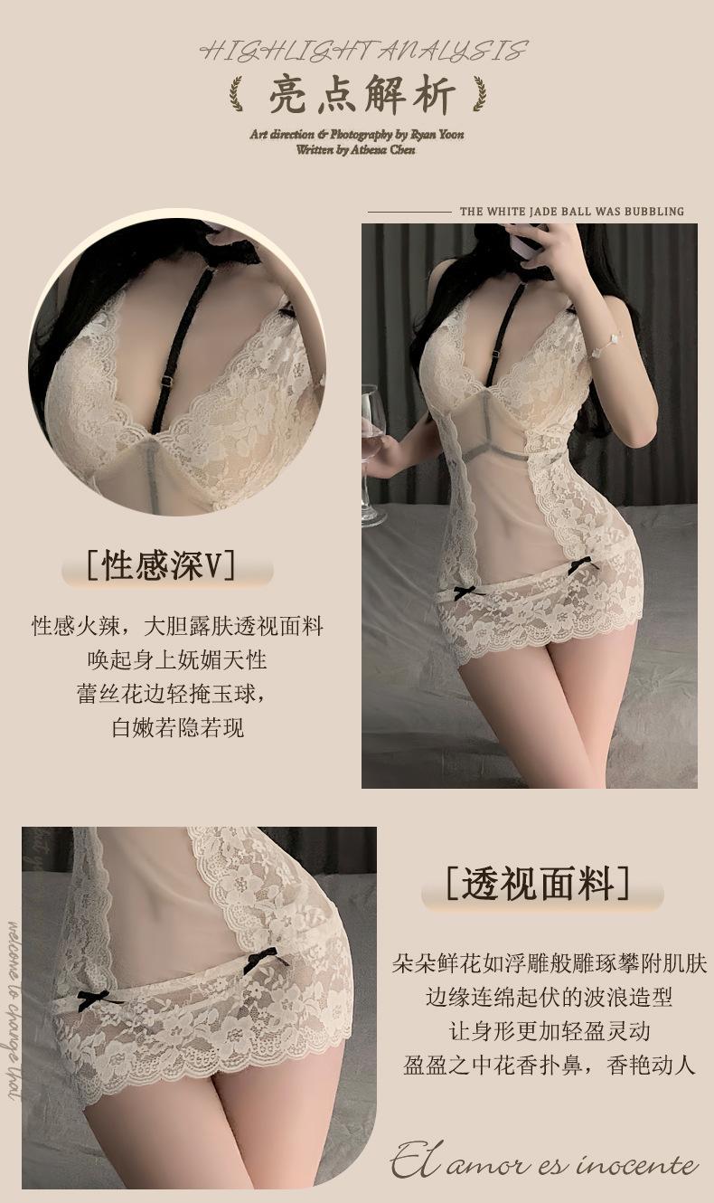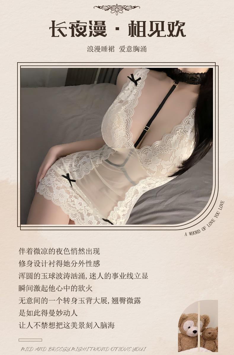 Compra Pijama Sexy Puro Deseo Ropa Interior Sexy Encaje Escote en V Profundo Perspectiva Púrpura Camisón de Tirantes Uniforme Gratis Tirantes Tentación al por mayor en Joom.pro
