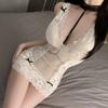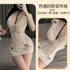 Pijama Sexy Puro Deseo Ropa Interior Sexy Encaje Escote en V Profundo Perspectiva Púrpura Camisón de Tirantes Uniforme Gratis Tirantes Tentación