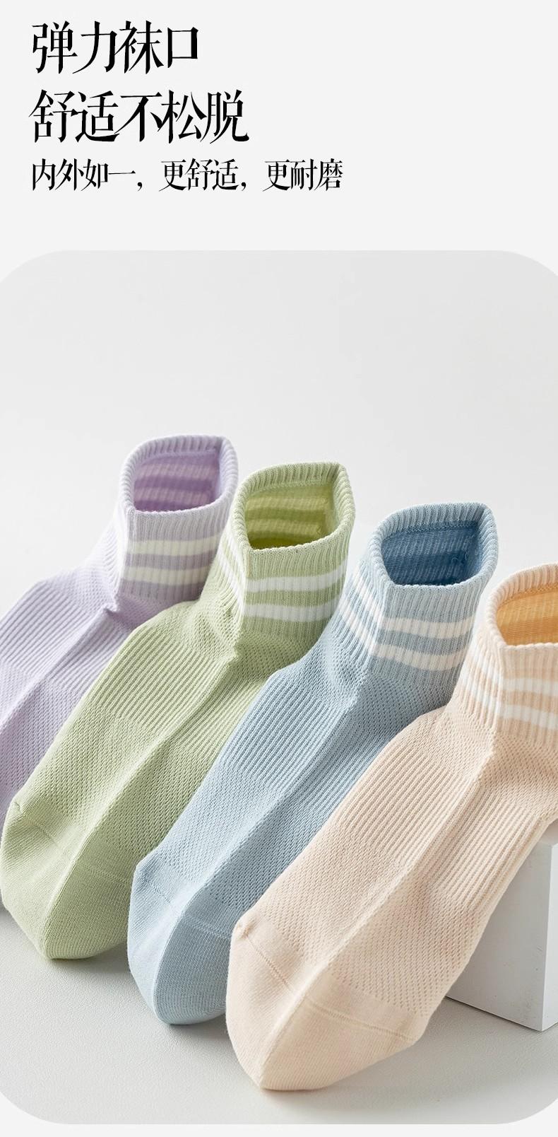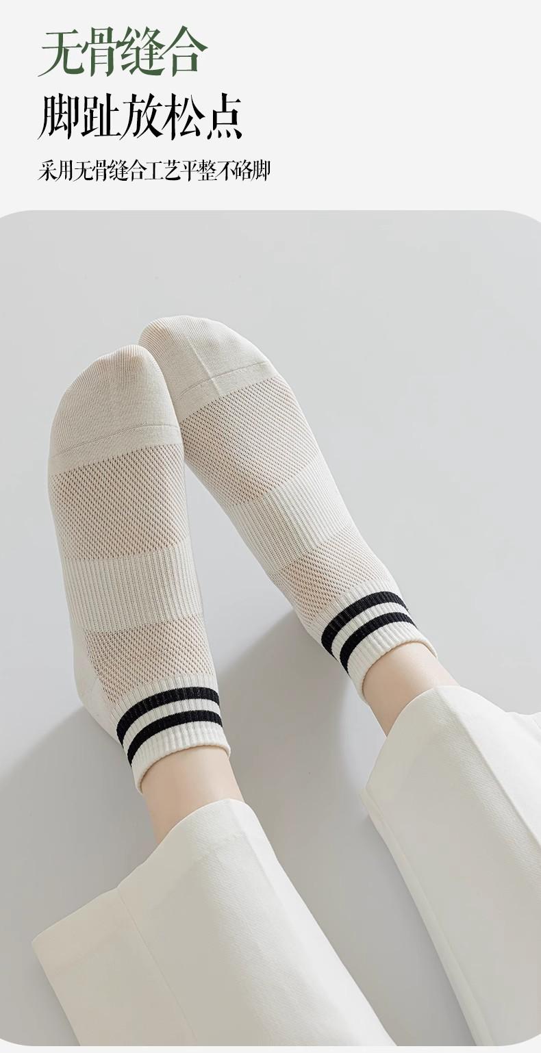 Calcetines de algodón a rayas blancas para mujer, de verano, de malla fina, transpirables, nuevos calcetines cortos sin espinas para mujer