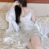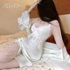 Camisón de dos piezas con encaje de seda helada, sexy, de primavera y verano, con almohadilla para el pecho, para el hogar