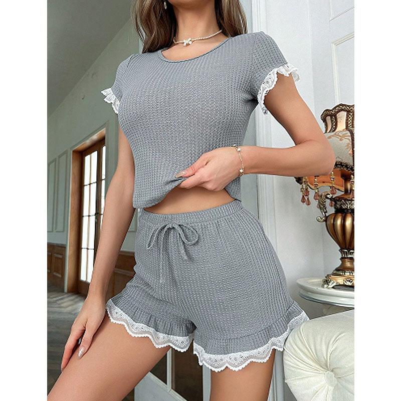 Compra Verano Nuevo Encaje Empalmado Pijama Set de Mujer Delgado Deportivo Ropa para el Hogar Manga Corta Shorts Conjunto de Dos Piezas Venta al por Mayor al por mayor en Joom.pro