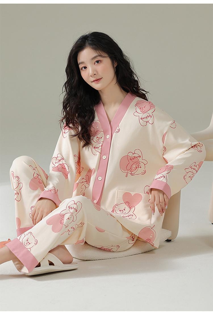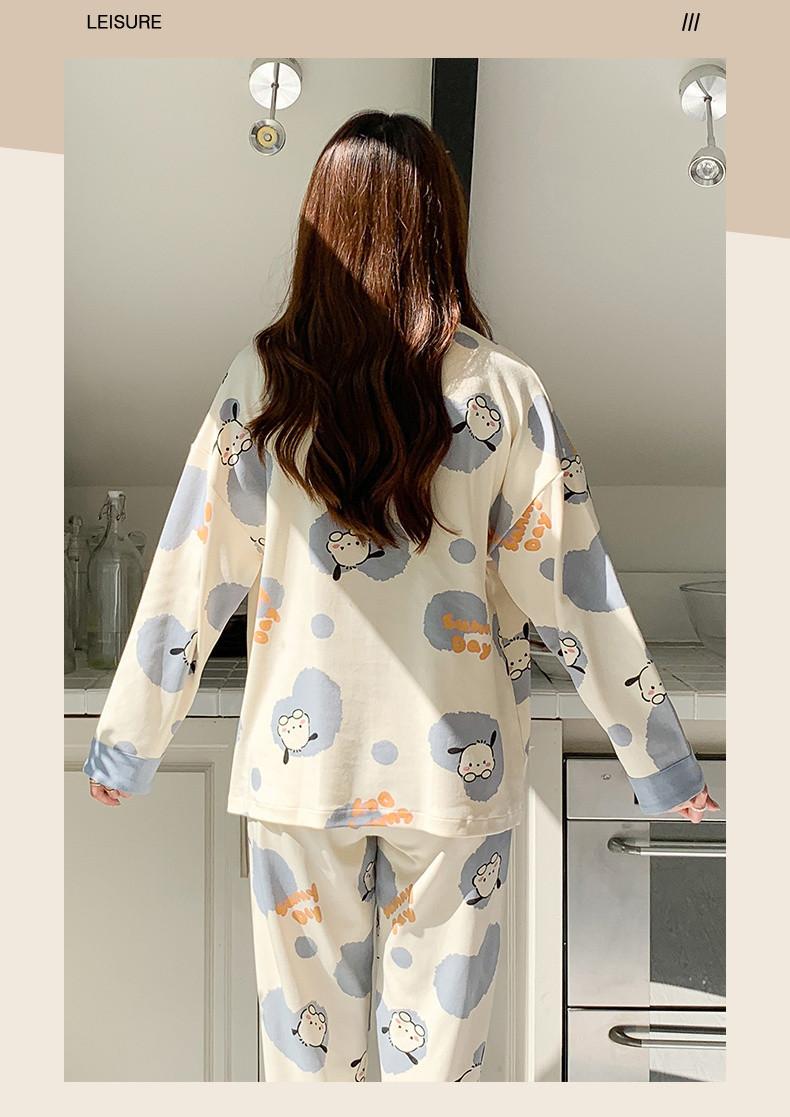 Gran Venta Pijamas para Mujer Primavera y Otoño Manga Larga Cuello Estilo Estudiante Nuevo Invierno y Verano Conjunto Ropa para el Hogar