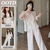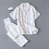 Pijama de Modal para Mujer Verano Manga Corta Pantalón Capri Dulce Lindo Solapa Cárdigan Ropa de Exterior Ropa para el Hogar