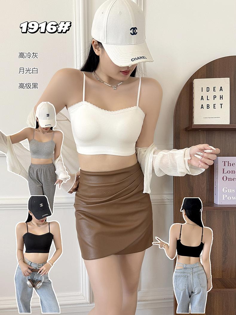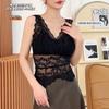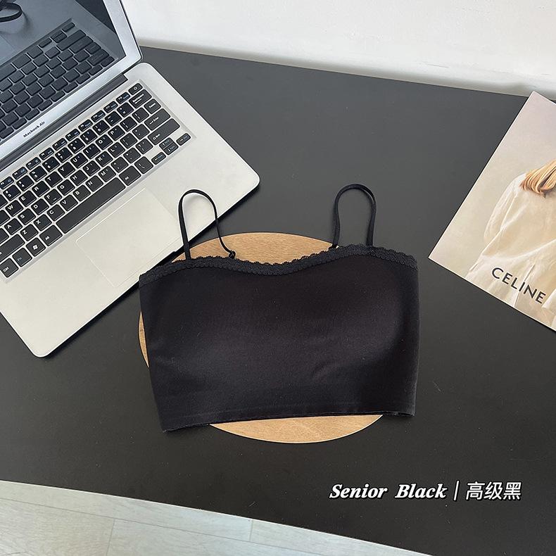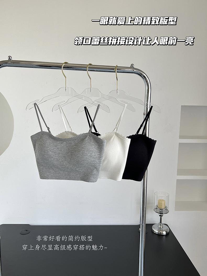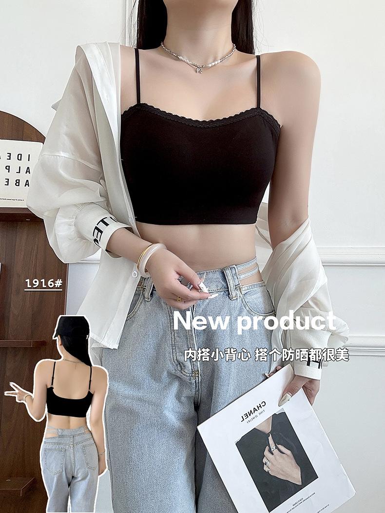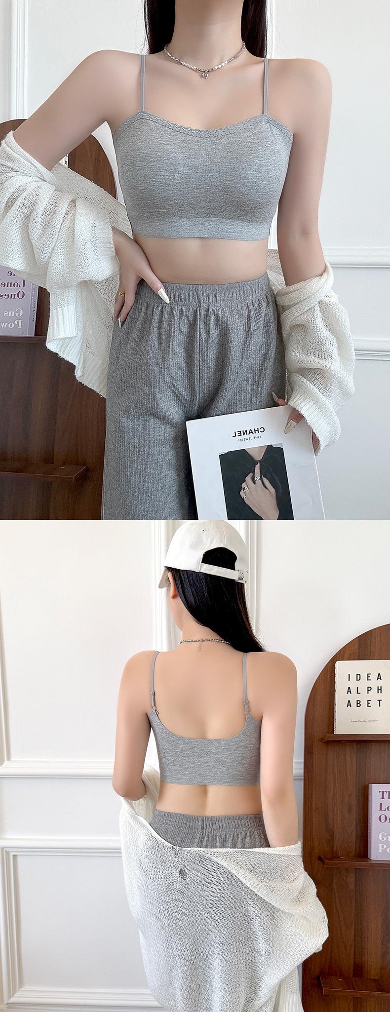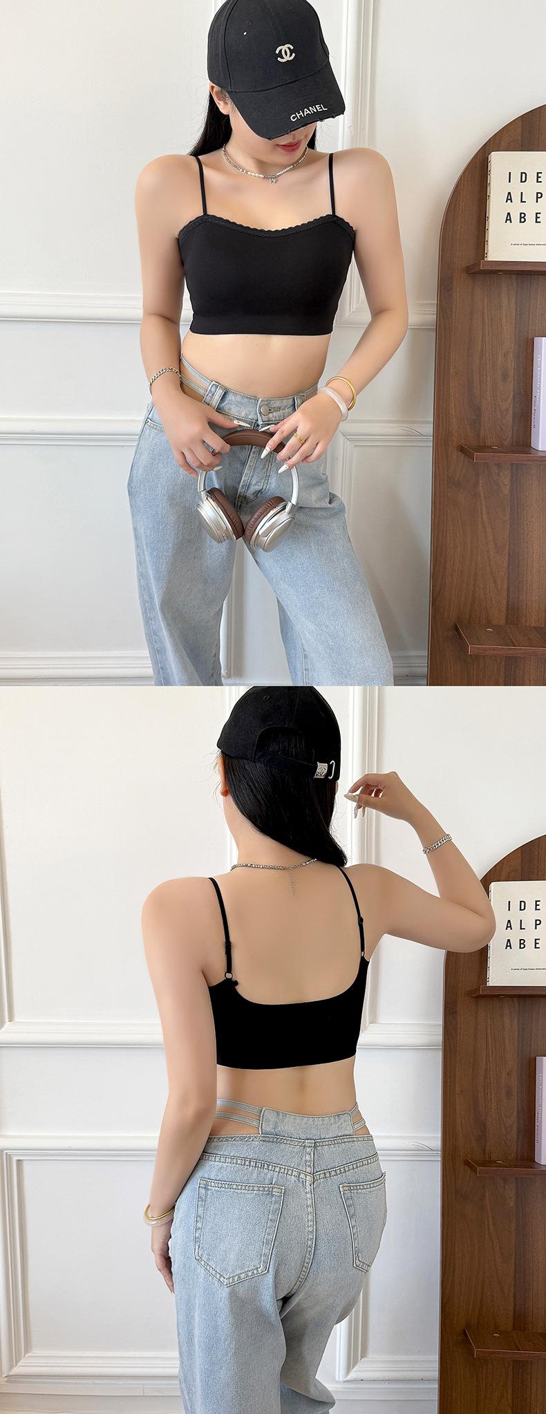 Sexy tirante con encaje de cuello en V, espalda hermosa envolvente para el pecho, sin aro de acero, copa fija, soporte superior recogido, chaleco sin costuras para mujer