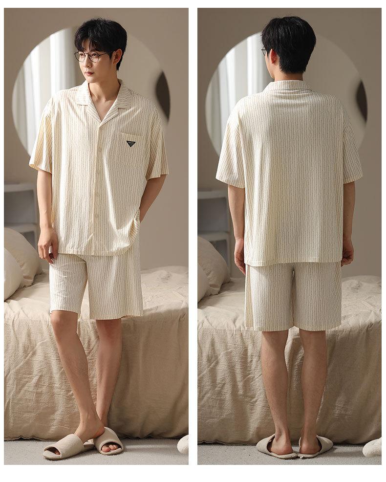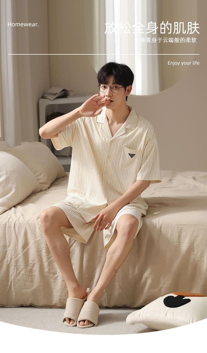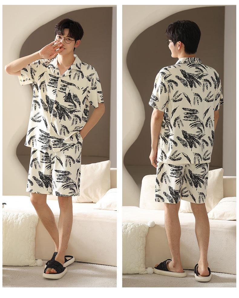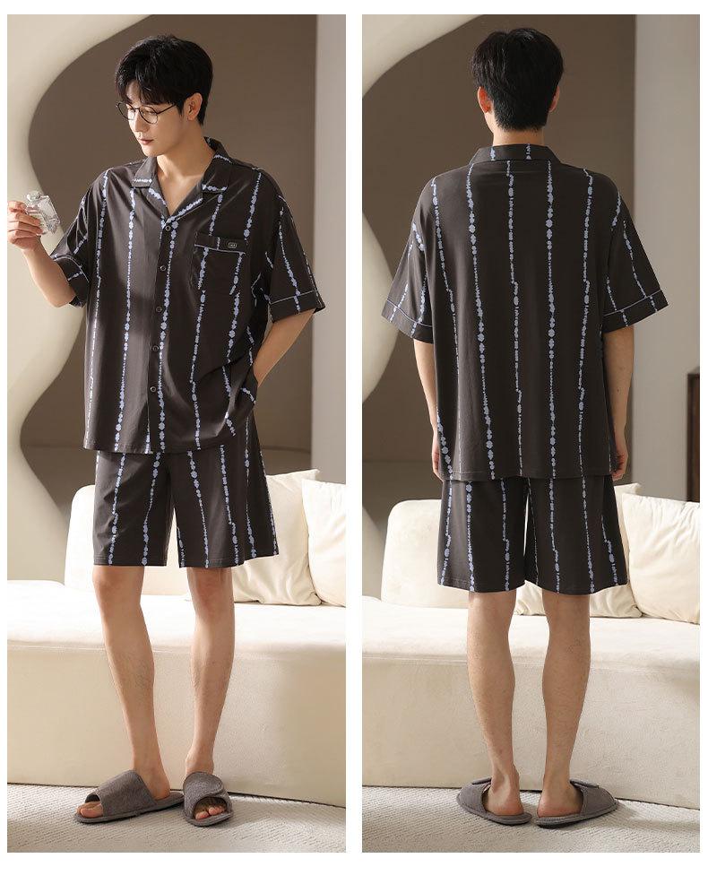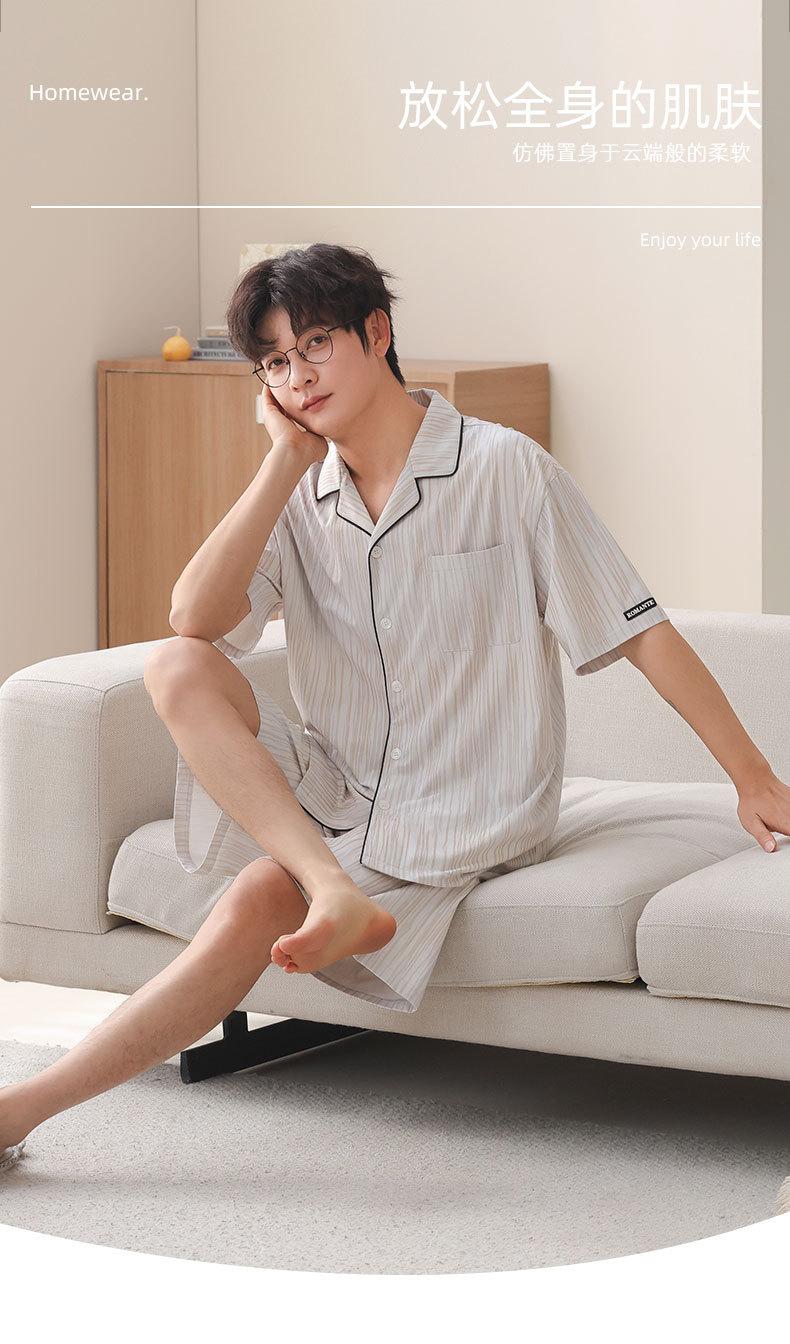 Pijama de verano para hombre, pantalones cortos de manga corta, nuevo cárdigan de solapa, talla grande, ropa juvenil modal para el hogar, traje de verano