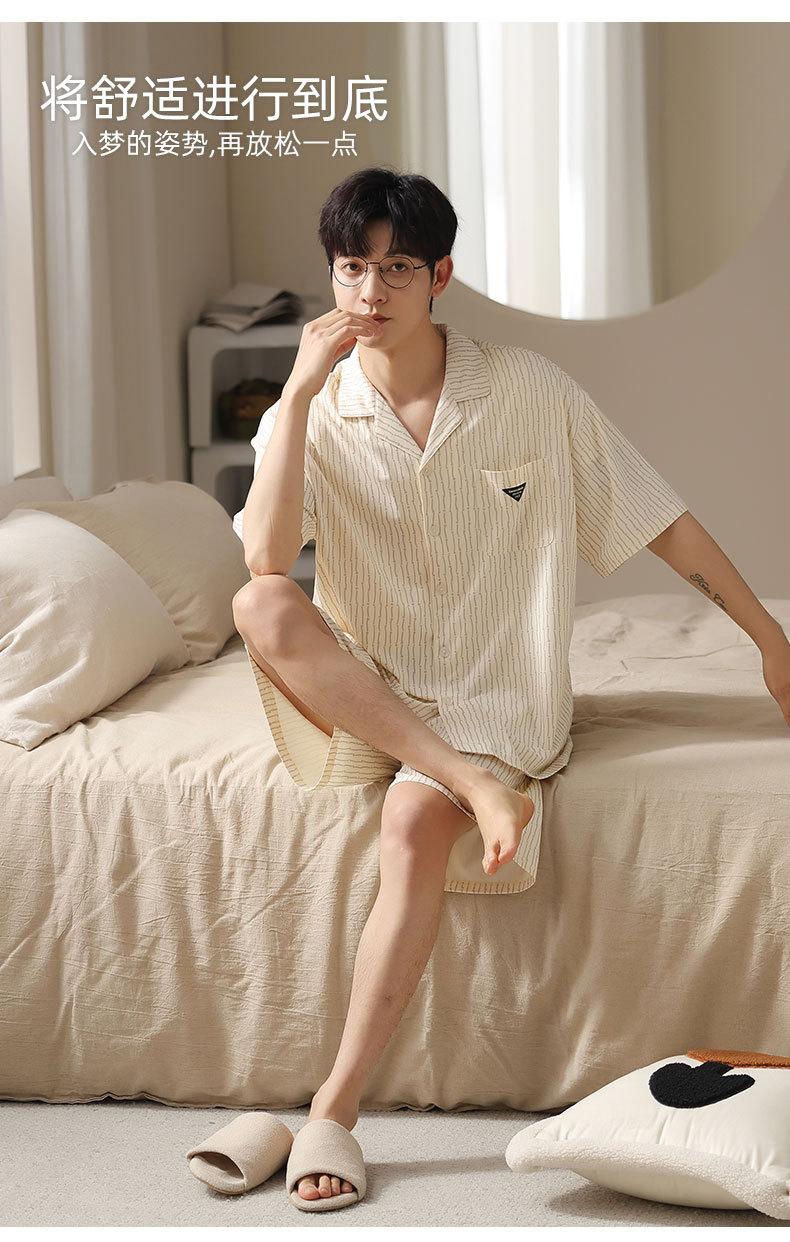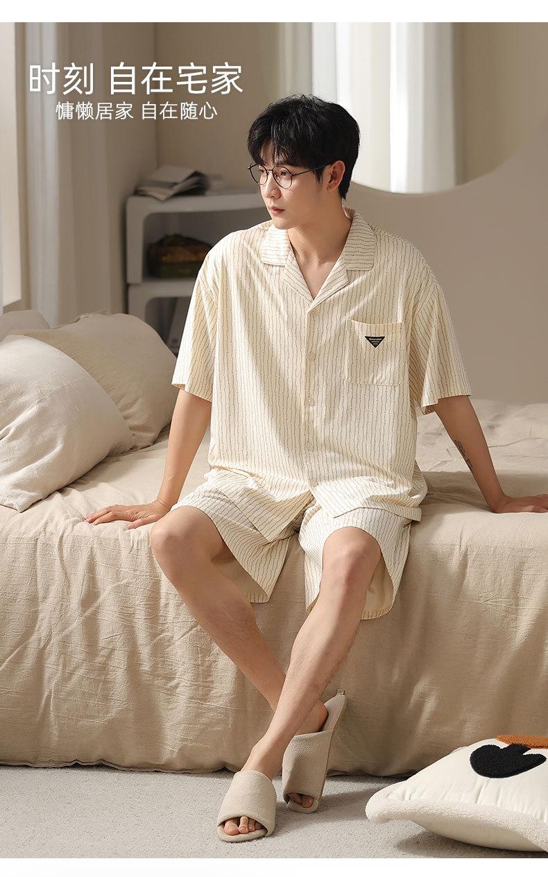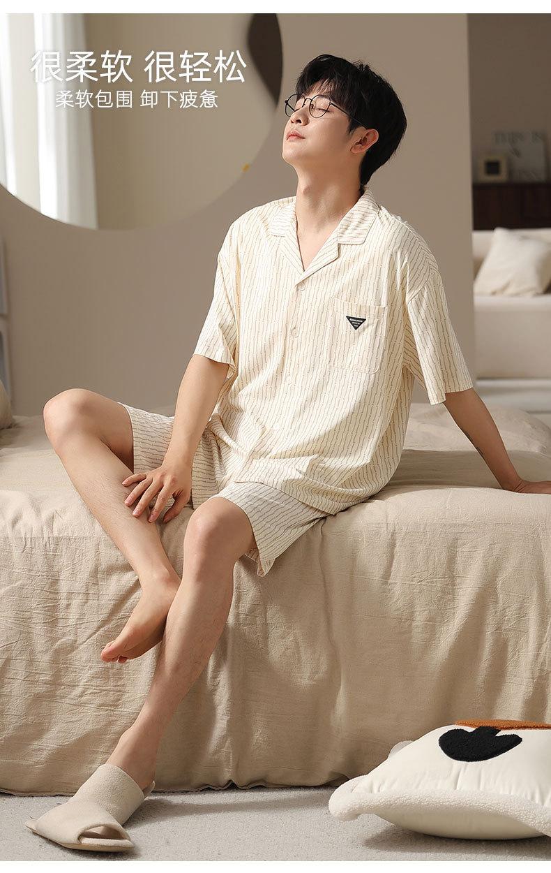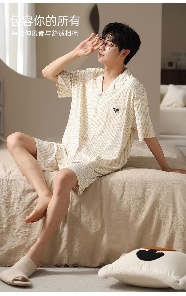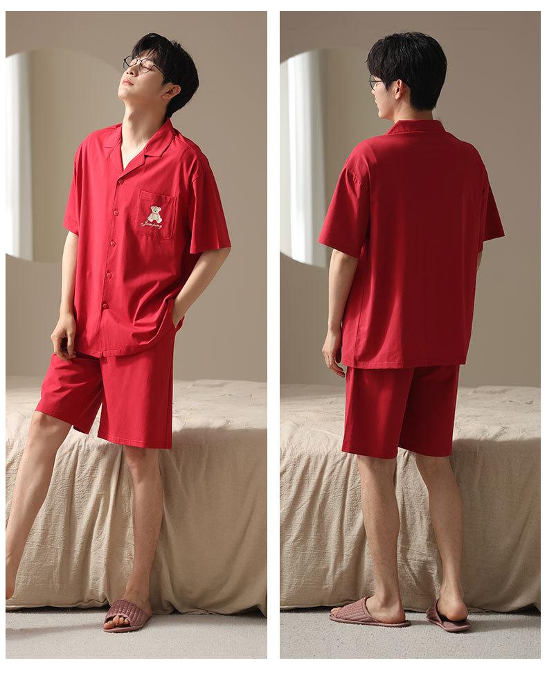 Pijama de verano para hombre, pantalones cortos de manga corta, nuevo cárdigan de solapa, talla grande, ropa juvenil modal para el hogar, traje de verano