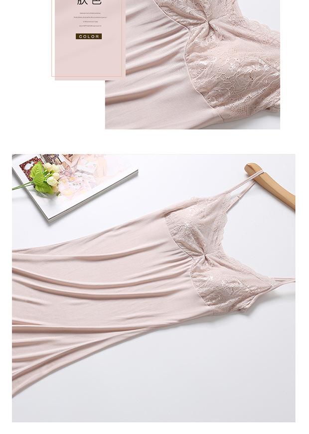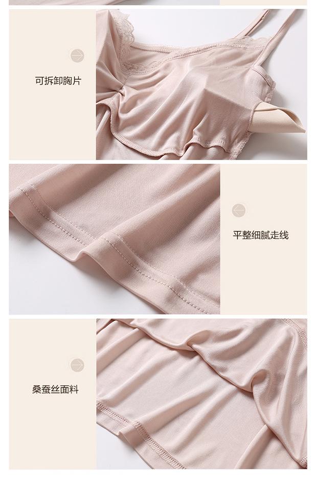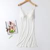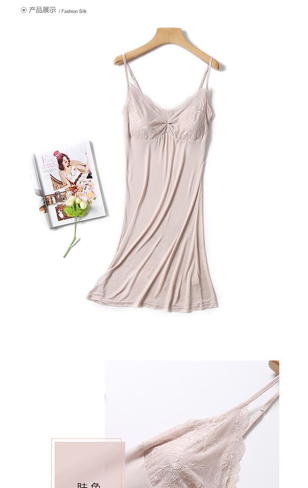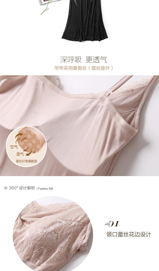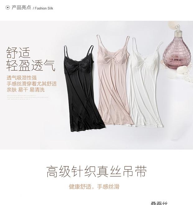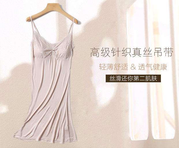 2020 Sujetador de Seda Una pieza Largo Medio Tirantes Falda Base Seda de Morera Tejido Sexy Enagua Camisón de Verano para Mujer