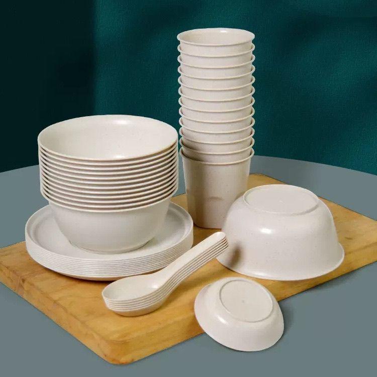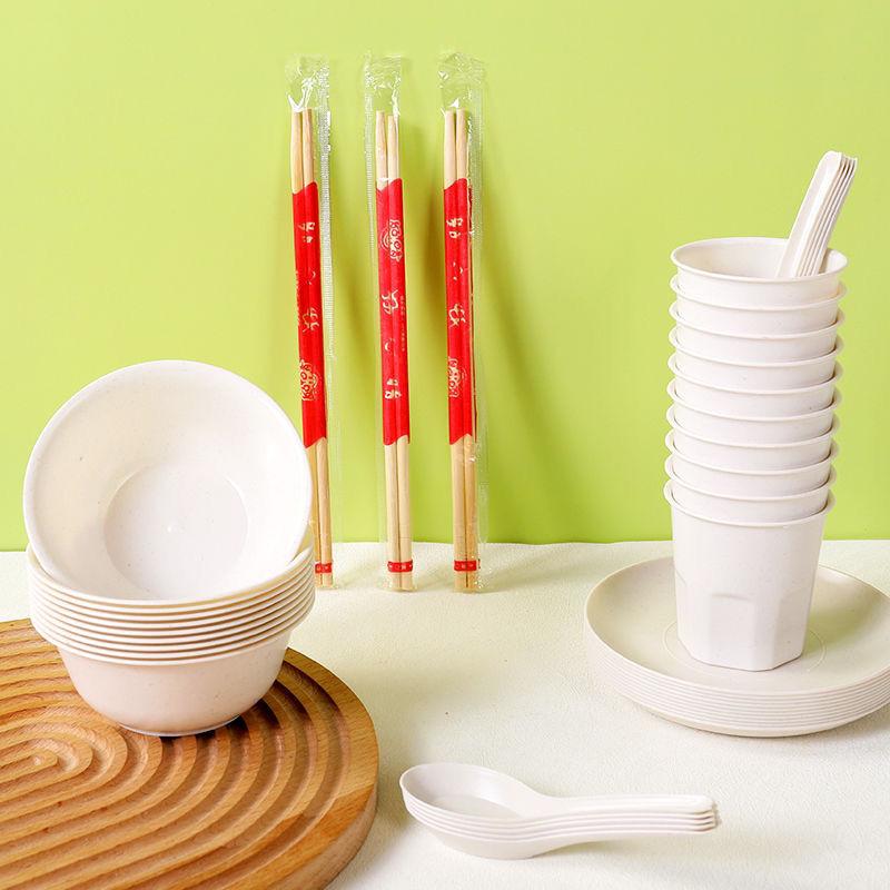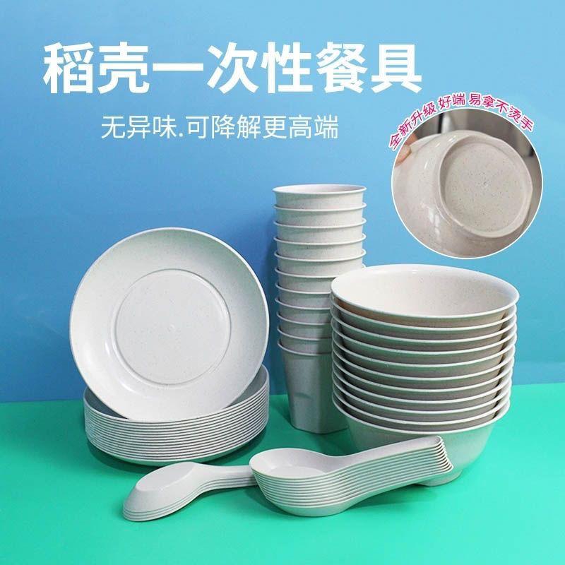 Compra Bowls Desechables de Cáscara de Arroz, Palillos, Platos, Tazas, Vajilla Ecológica, Espesado, Resistente a Altas Temperaturas, Juego Biodegradable de Cuatro Piezas, Grado Alimenticio al por mayor en Joom.pro