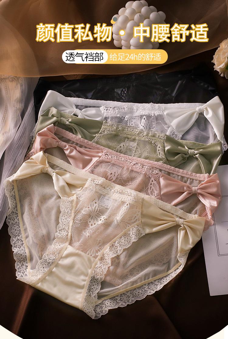 7A Antibacteriano Nuevo Ropa Interior de Algodón Puro para Mujer Entrepierna Transpirable Suave Sexy Lazo Cintura Media Cómodos Calzones de Niña