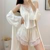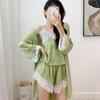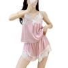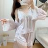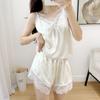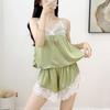 Pijama Sexy de Mujer de Seda de Hielo de Tirantes Shorts Verano Delgado Traje de Tres Piezas con Almohadilla en el Pecho Ropa de Casa Pura de Primavera y Otoño