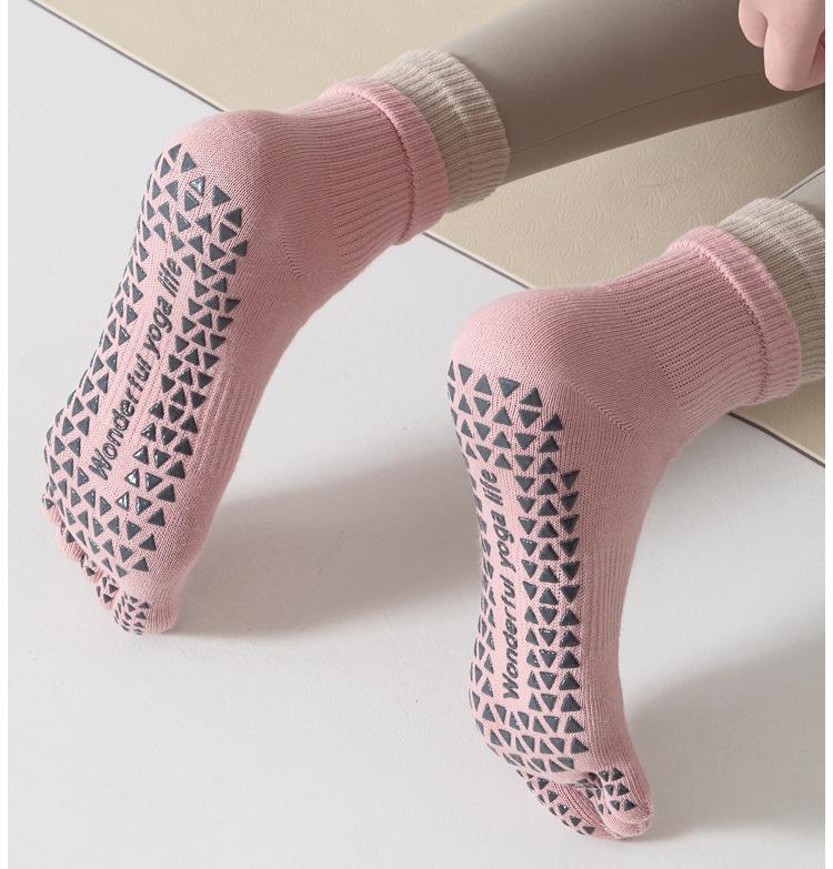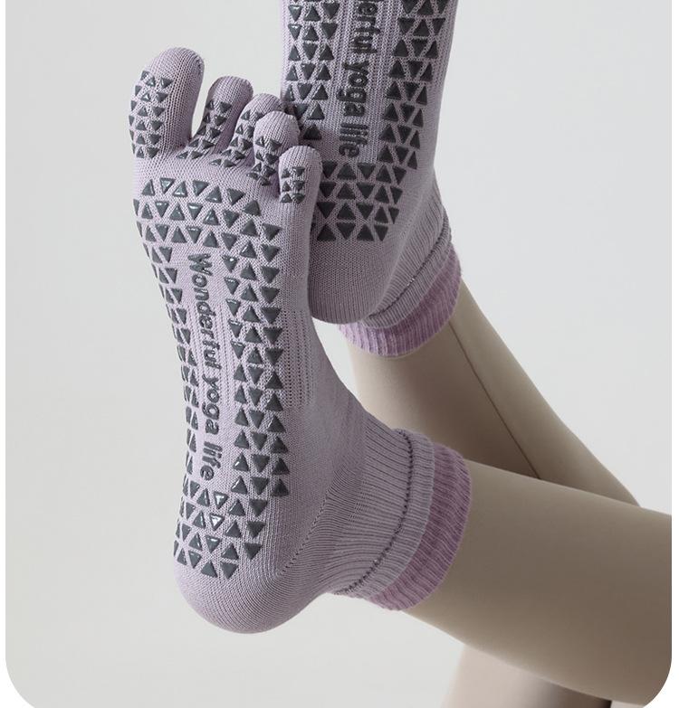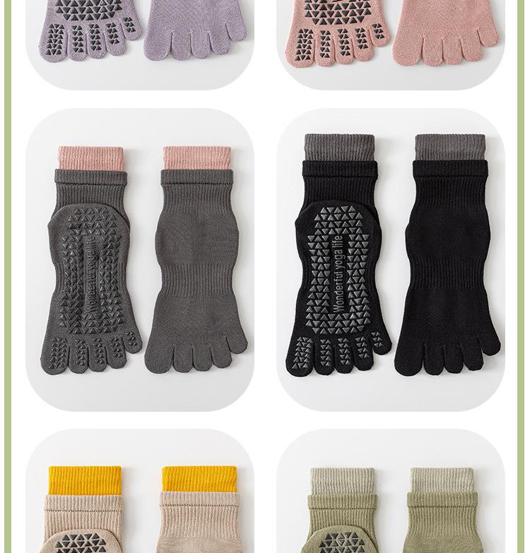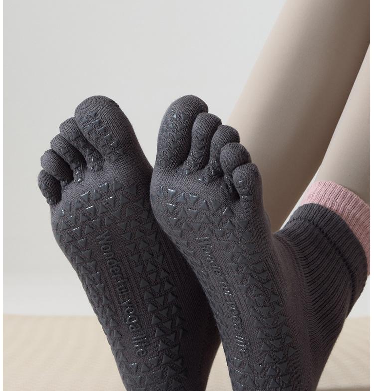 Calcetines de Yoga Profesionales Deportivos de Fitness de Cinco Dedos para Mujer Primavera y Verano Antideslizantes de Silicona para Pilates Interior Dedos Medios