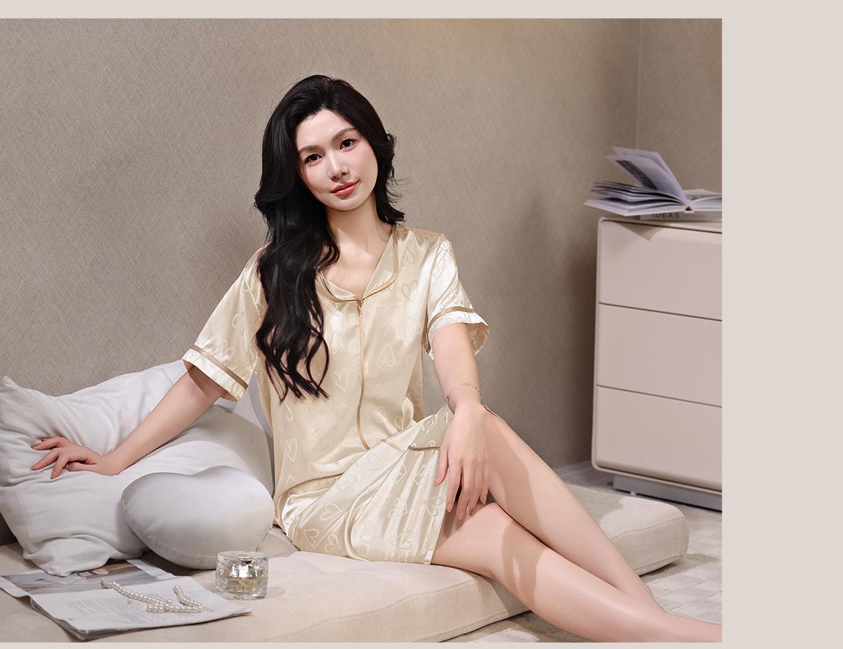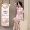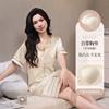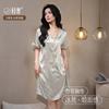 [Seda de hielo y nieve] Pijama de verano para mujer, camisón fino estilo francés con almohadilla para el pecho, seda de hielo pura, manga corta, talla grande, ropa para el hogar