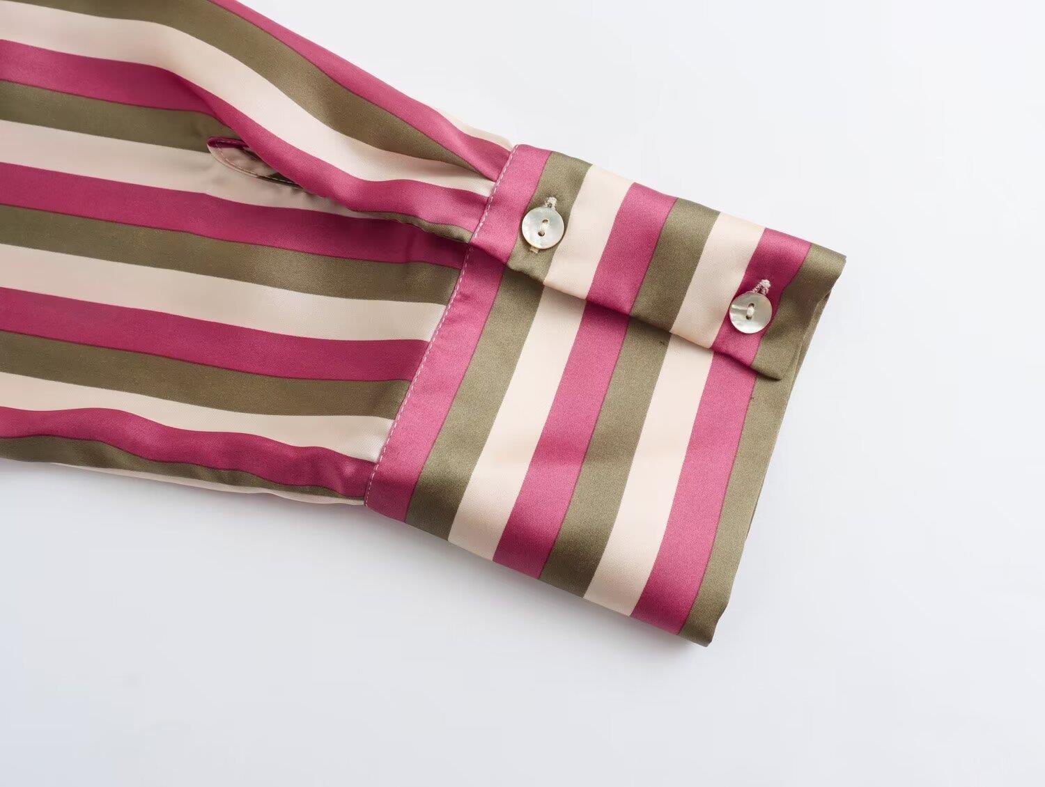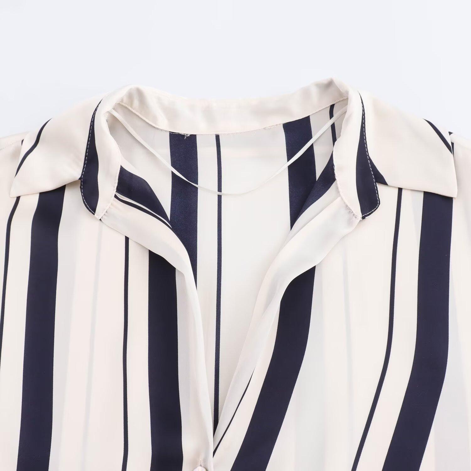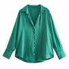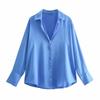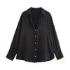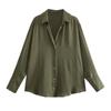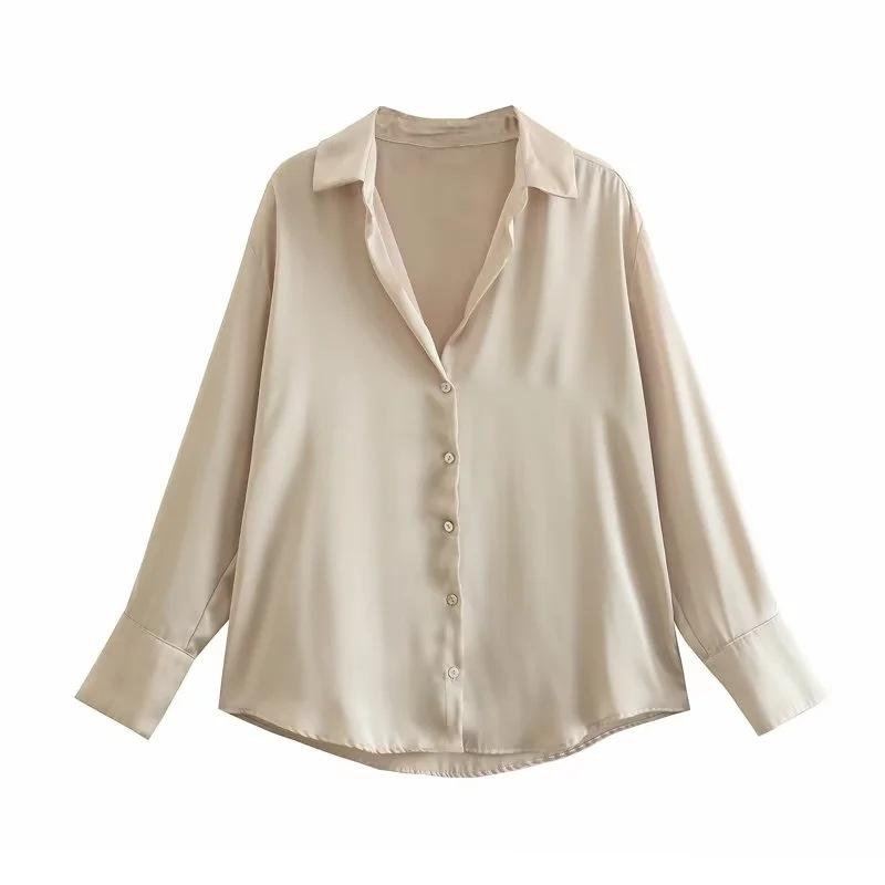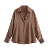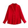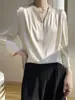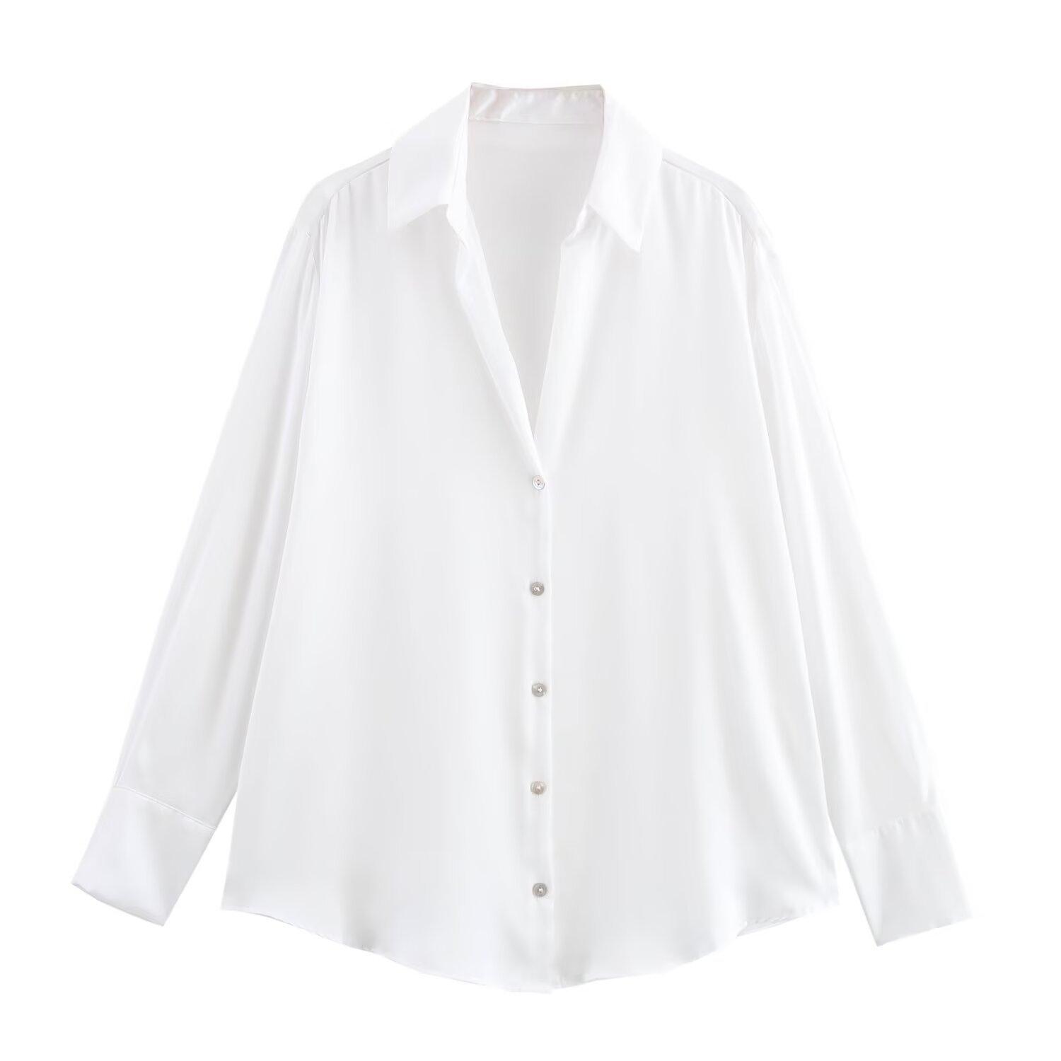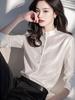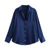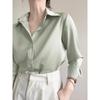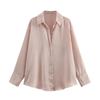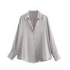 Satén Primavera Nuevo Versátil Cuello en V Drapeado Seda Satén Texturizado Drapeado Camisa Manga Larga 2025 Estilo Sencillo Europeo y Americano