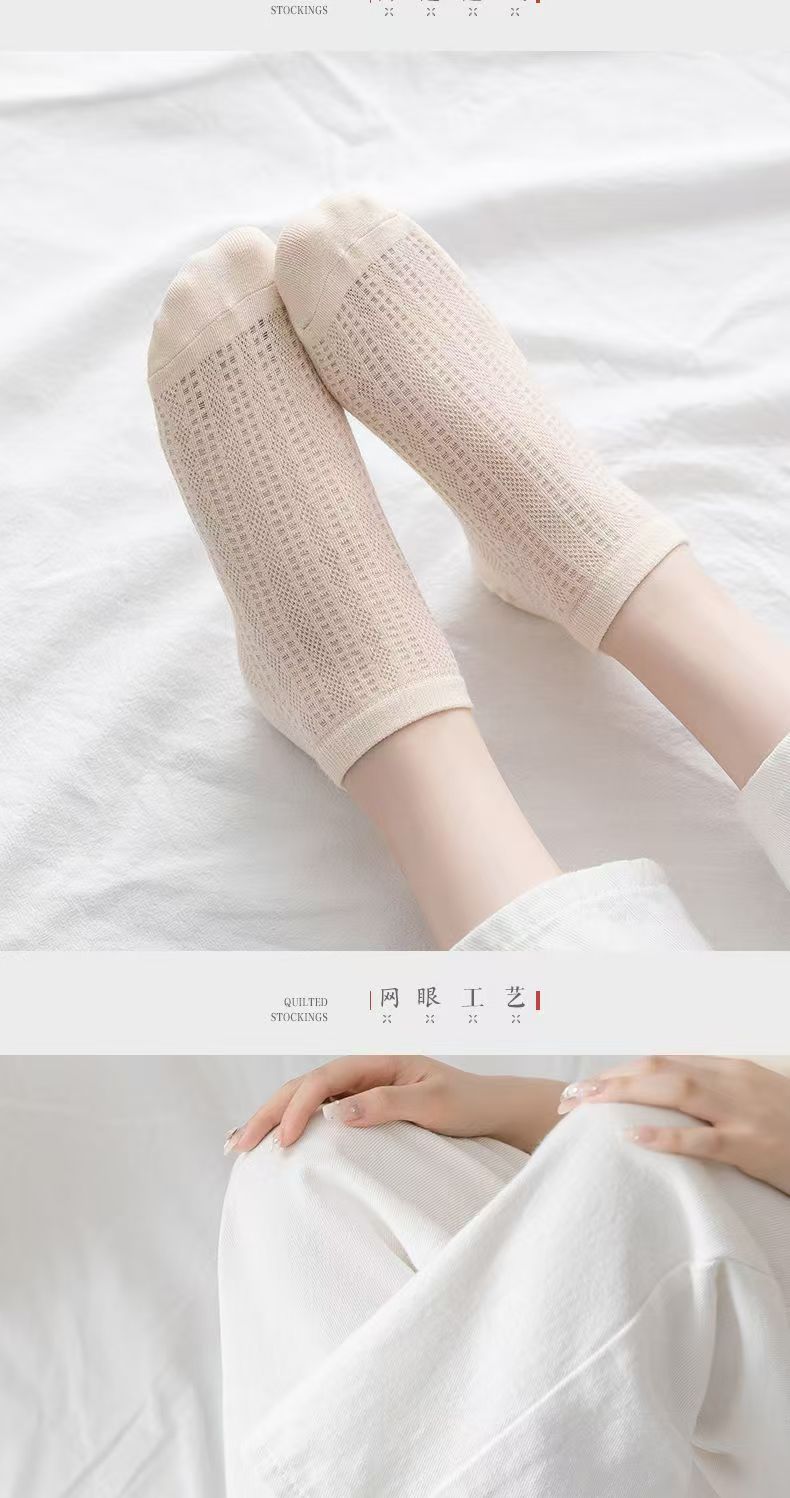 Calcetines finos de algodón de verano para mujer, de malla transpirable y antibacteriana, desodorantes y absorbentes del sudor.