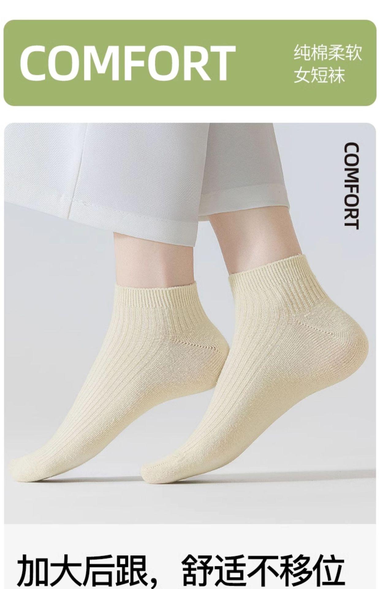 Calcetines de Algodón para Mujer Doble Aguja Absorbentes de Sudor Transpirables Antibacterianos Desodorantes Calcetines de Algodón Sin Costuras Delgados de Media Caña Ins Calcetines Cortos de Moda