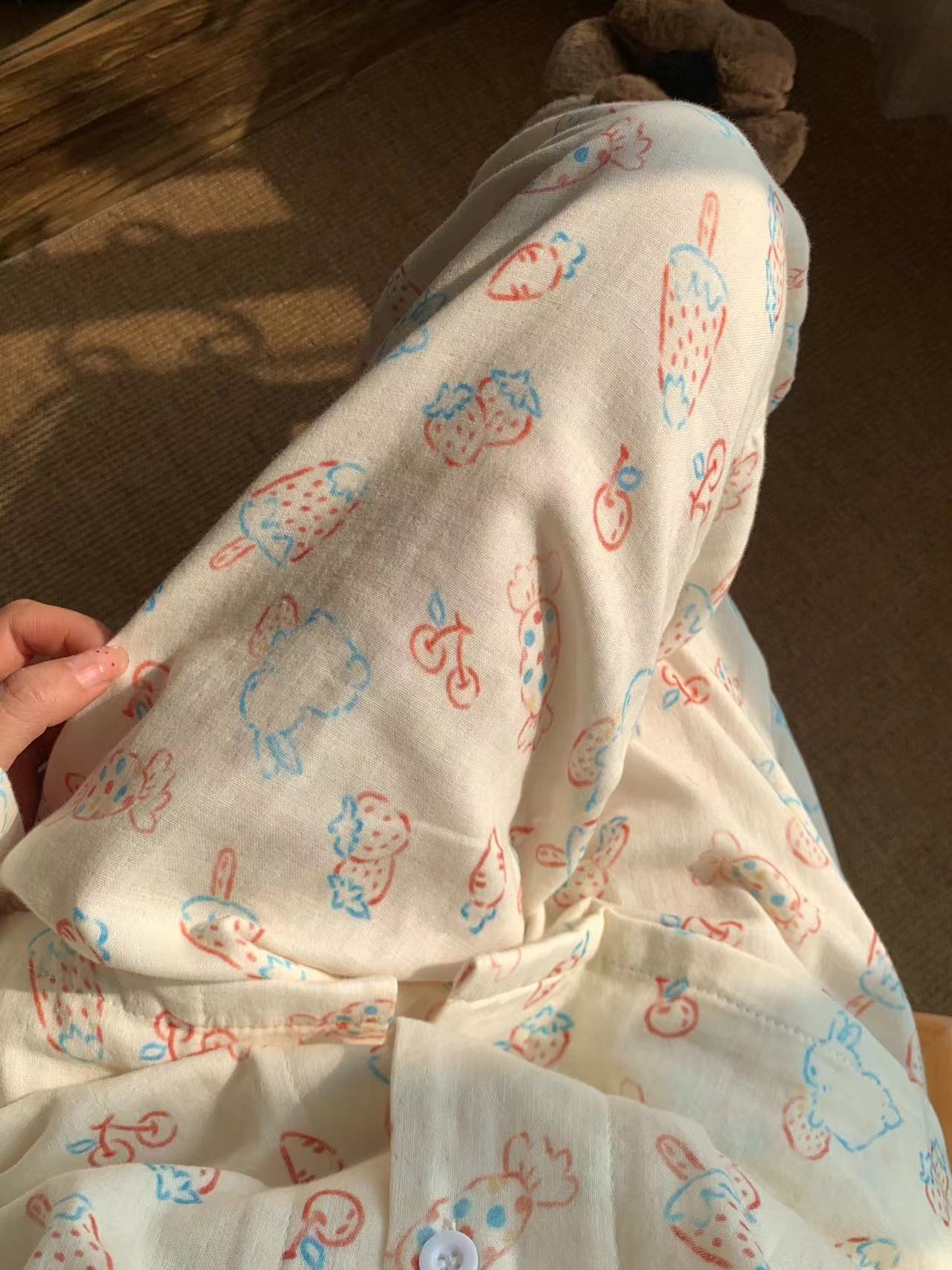 Strawberry candy bunny-double-layer gauze lapel suit M