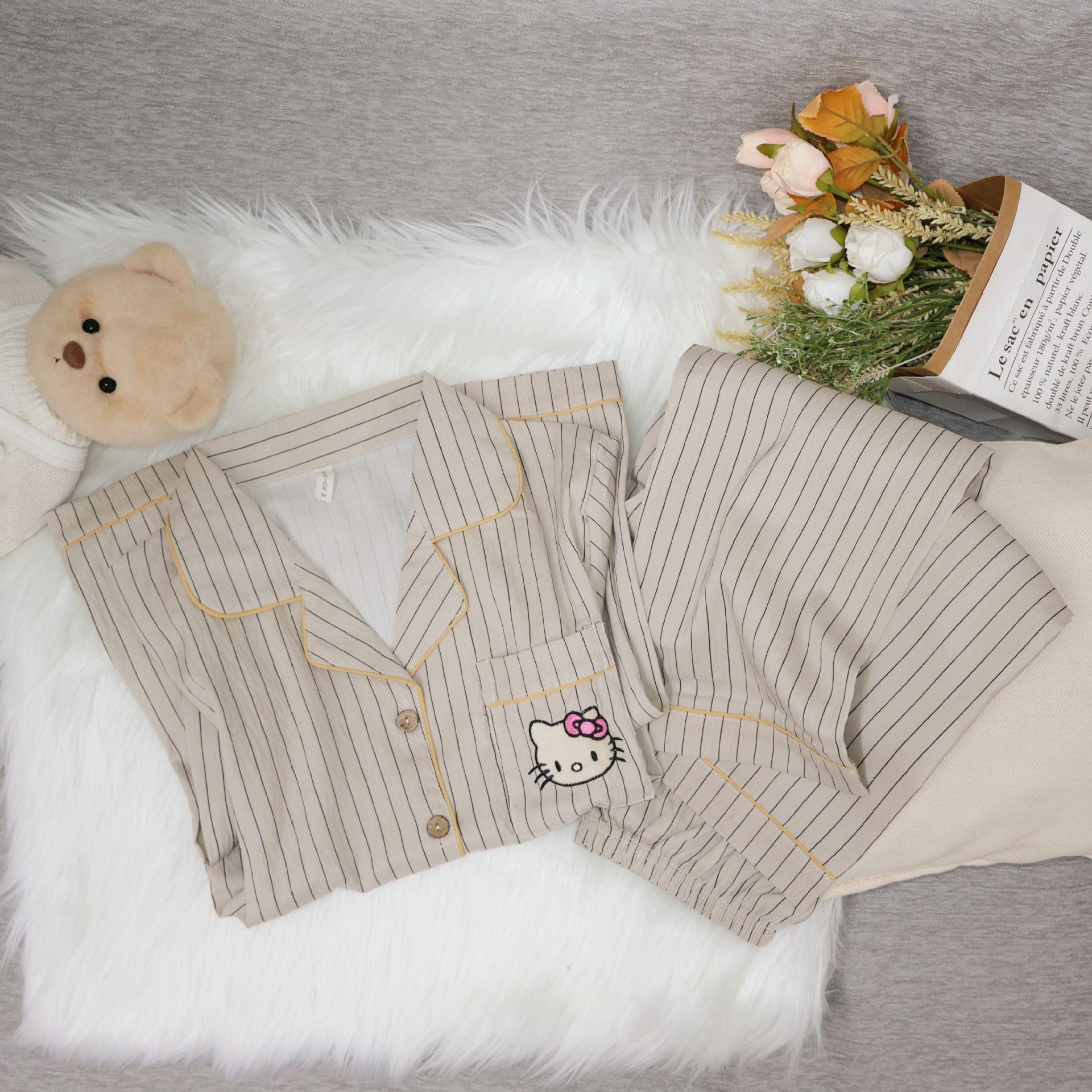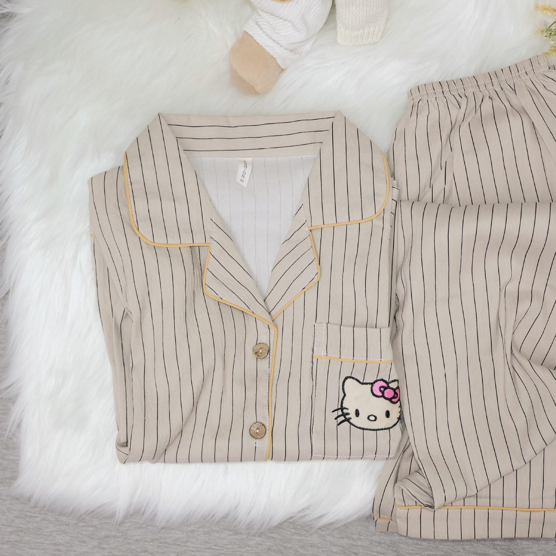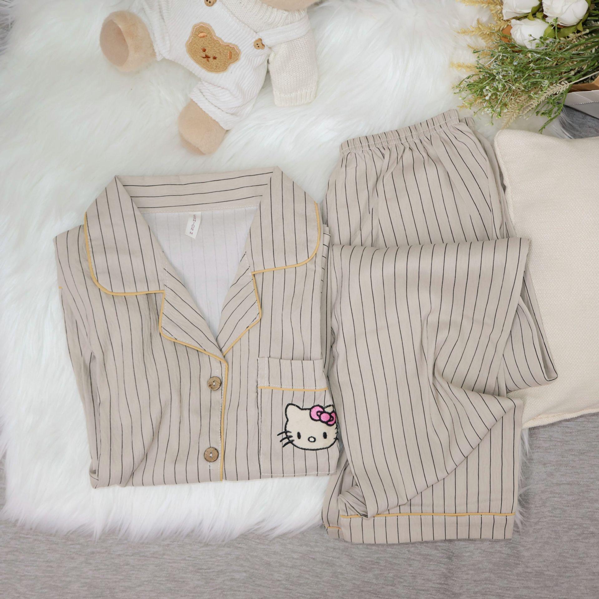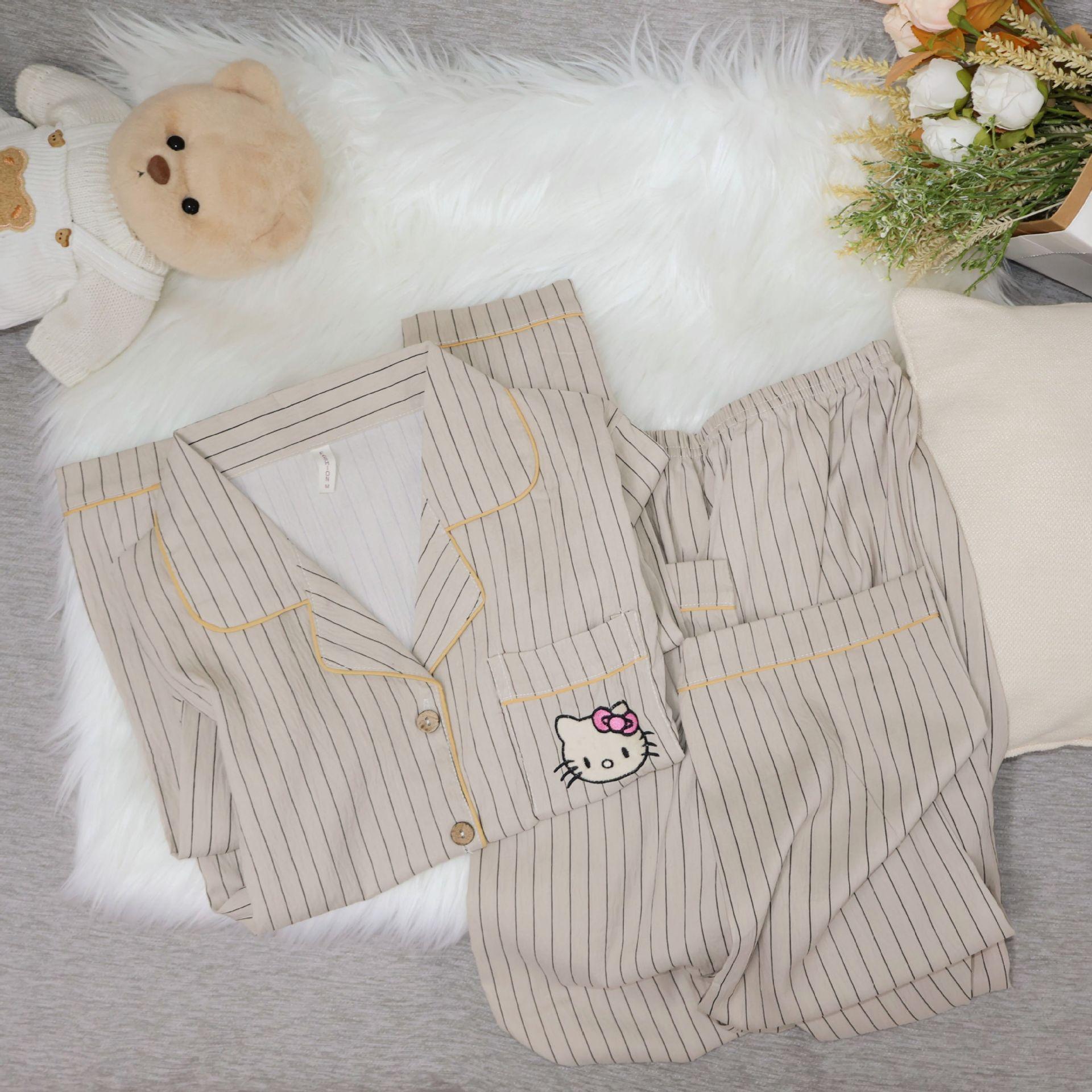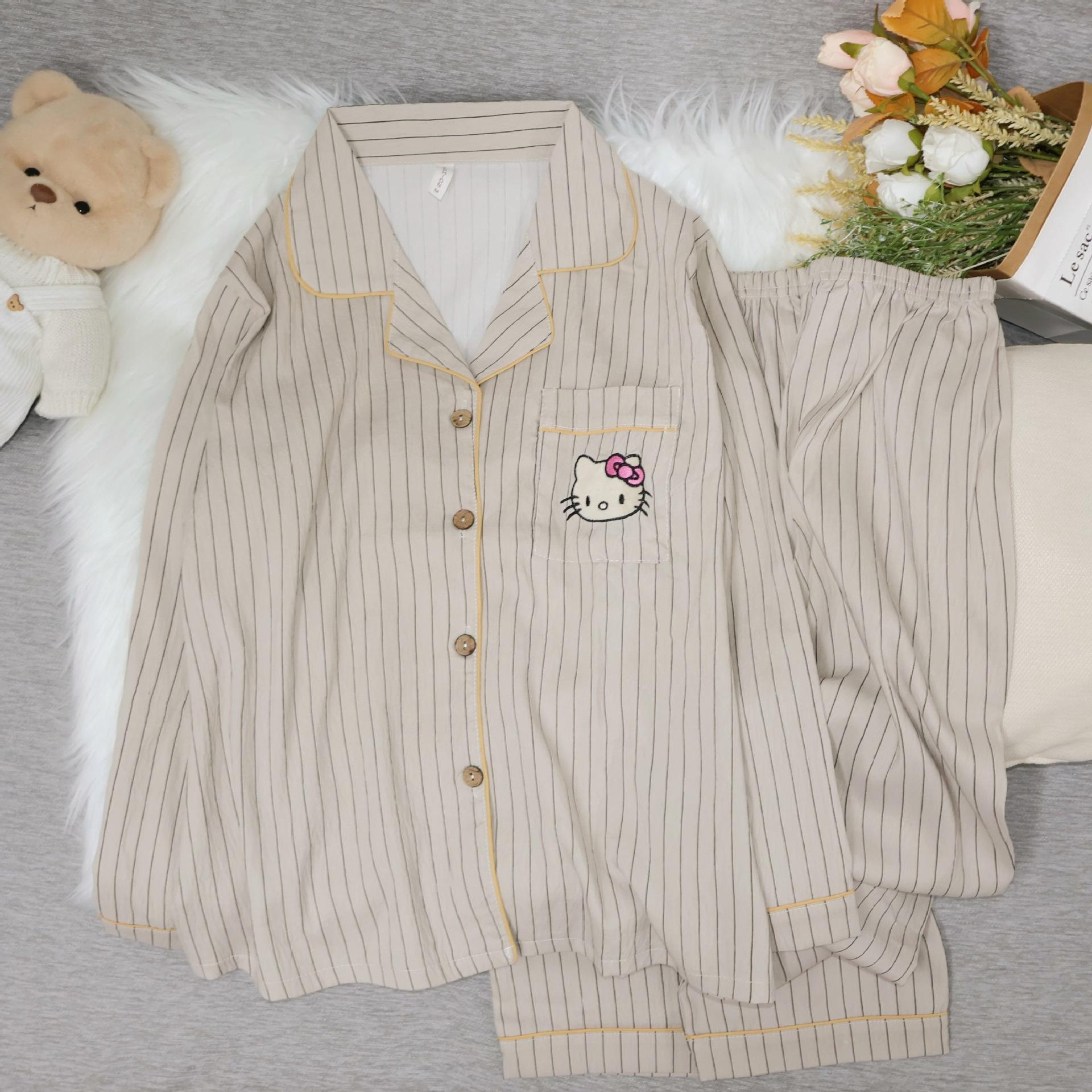 Pantalones de manga larga de algodón con nubes para primavera y otoño, pijamas de gato Kt bordados, ropa bonita y dulce para el hogar para mujer, ropa exterior