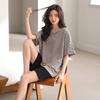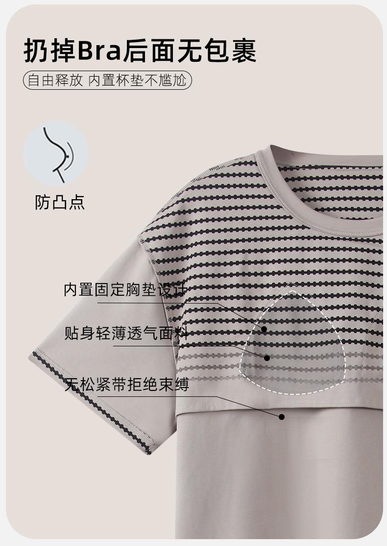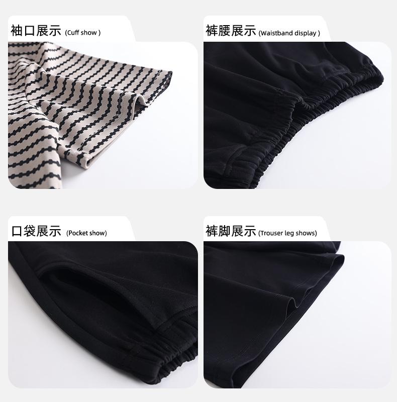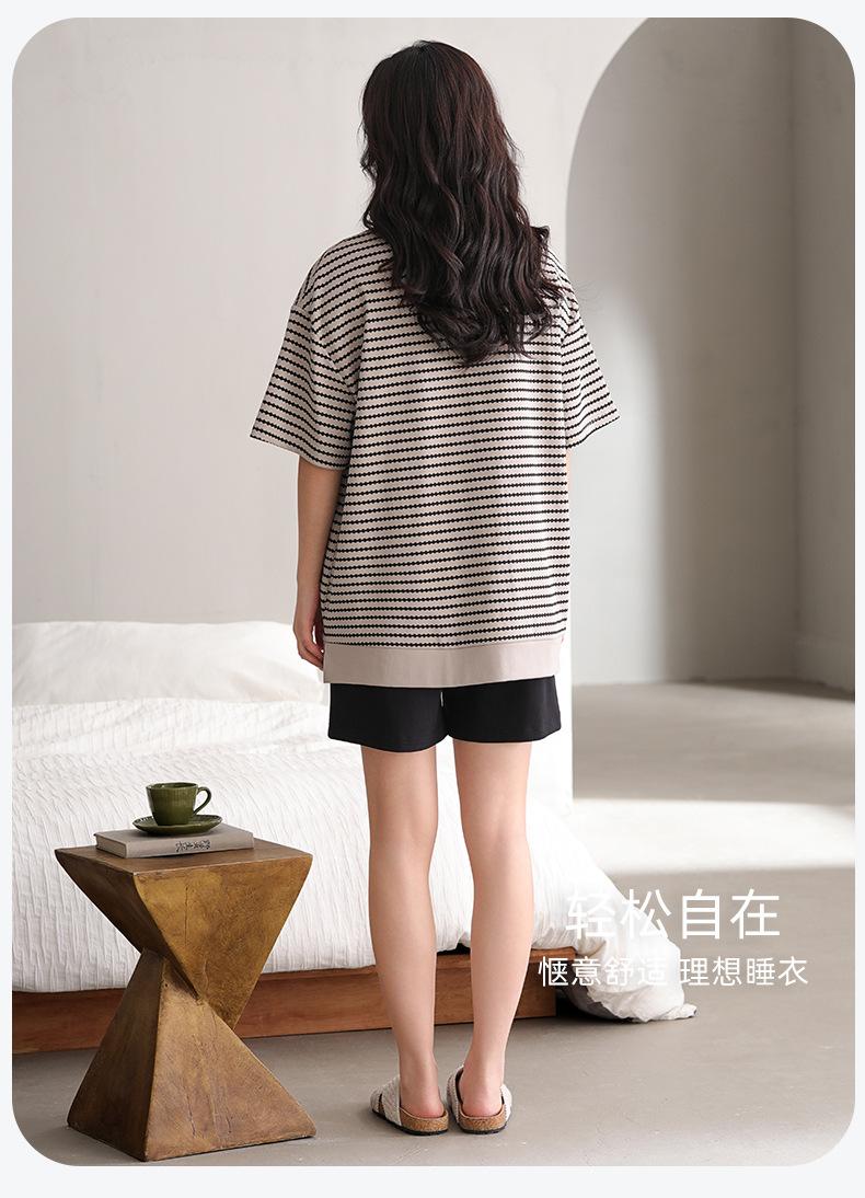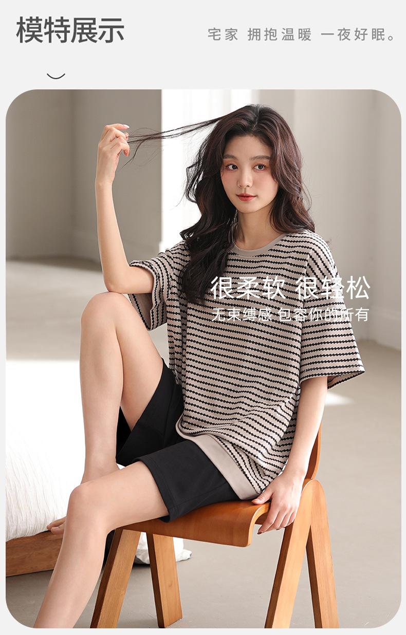 Primavera y Otoño Modal Fresco Ropa de Mujer Diadema Almohadilla para el Pecho Manga Corta Ropa para el Hogar Nuevo Estilo Ropa Exterior Traje a Rayas