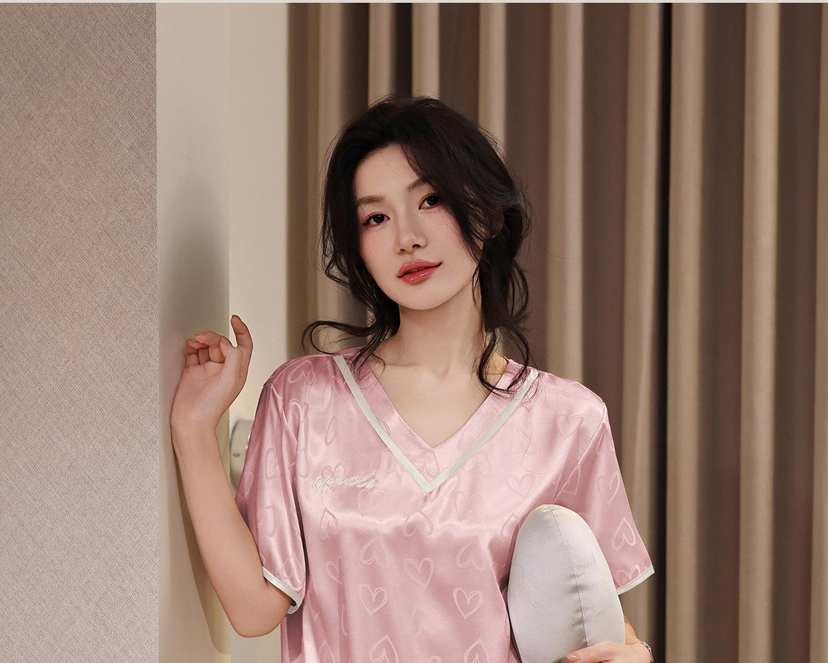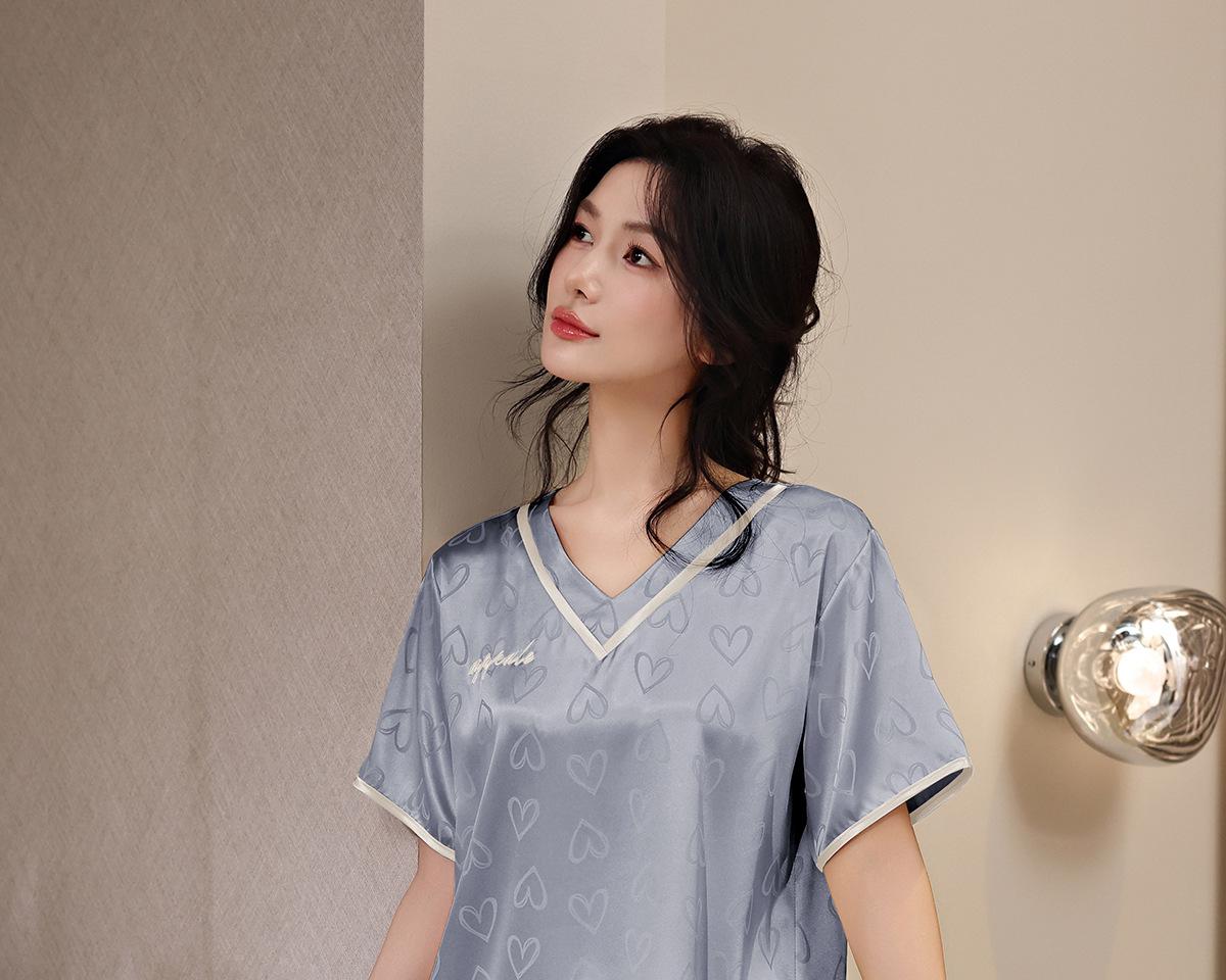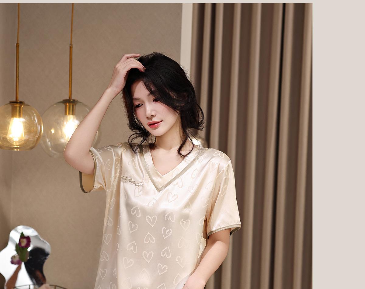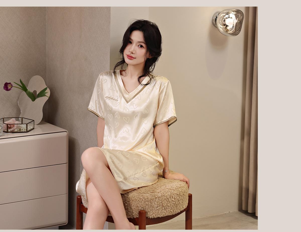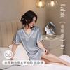 [Seda de hielo y nieve] Camisón de seda de hielo nuevo, pijama de verano para mujer, fresco, de manga corta, talla grande, con almohadilla para el pecho, estilo puro deseo, ropa para el hogar