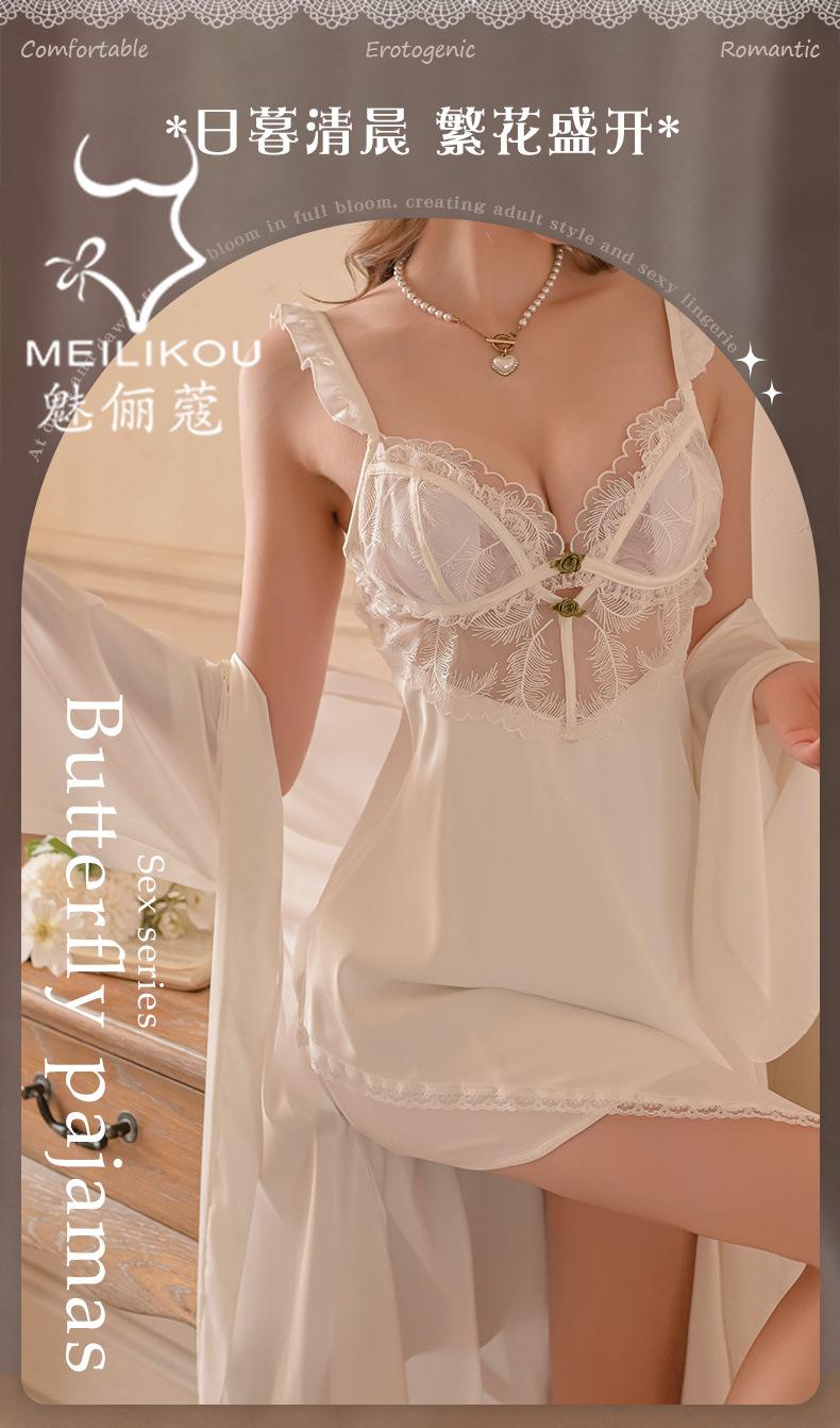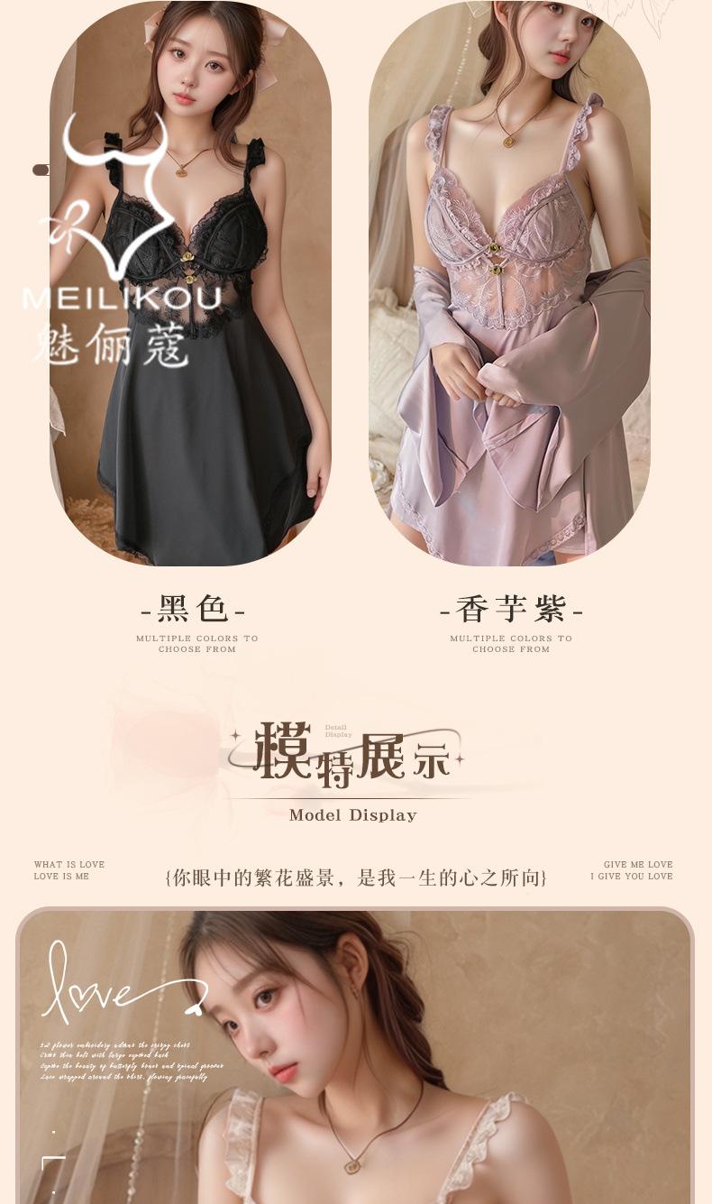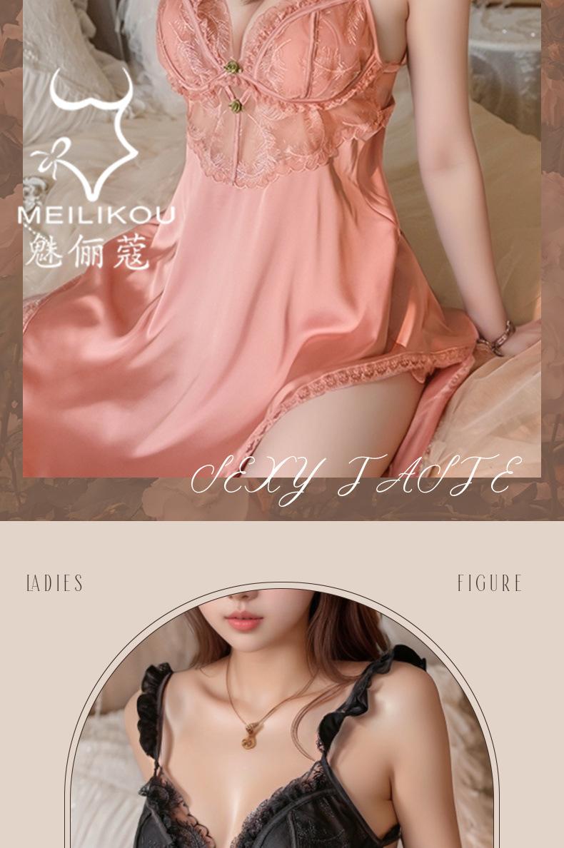 Meili Coco Sexy Inside Sexy Encaje con Puntadas de Satén y Almohadilla en el Pecho Sexy Camisón Bata Ropa de Casa Traje 2181