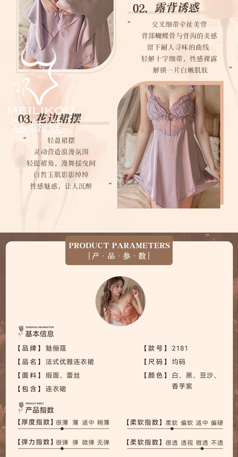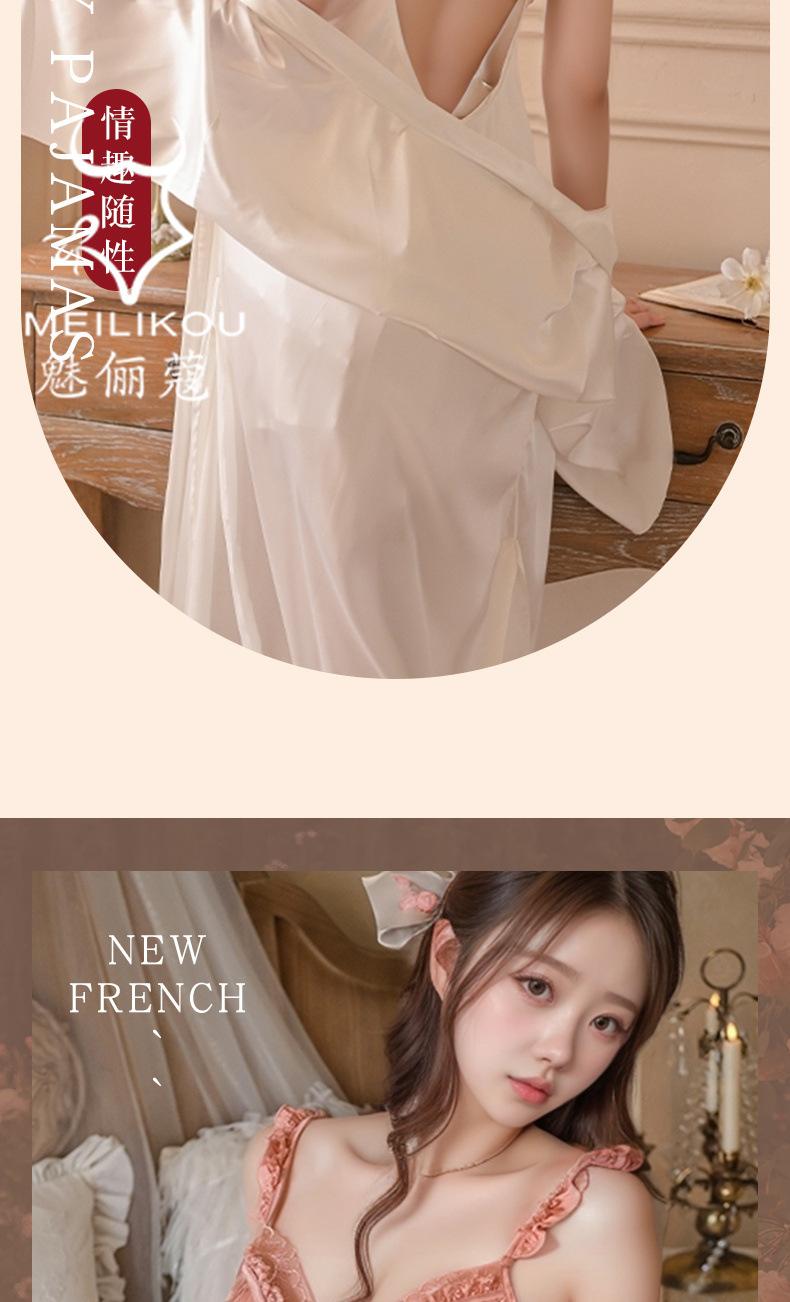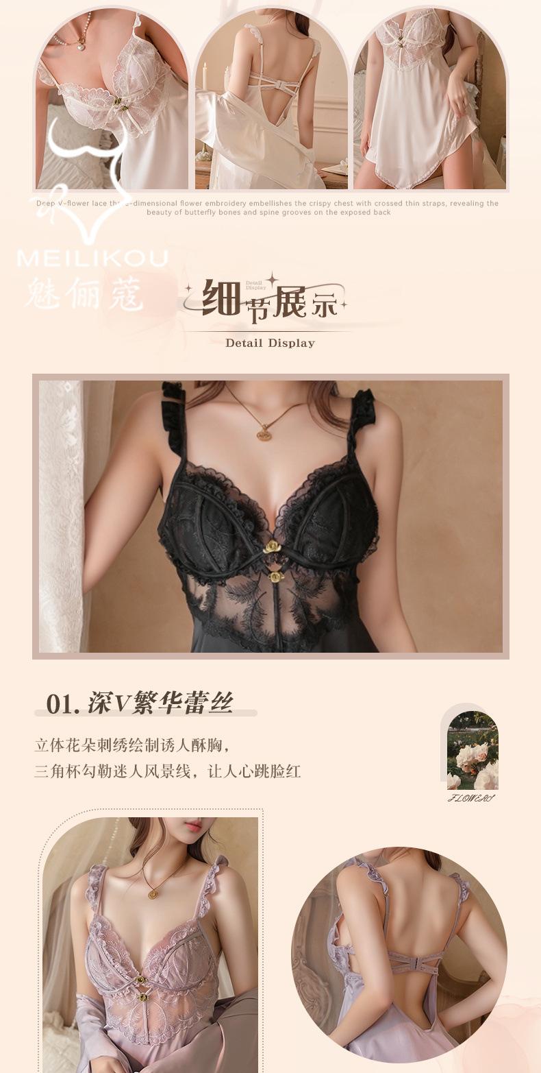 Meili Coco Sexy Inside Sexy Encaje con Puntadas de Satén y Almohadilla en el Pecho Sexy Camisón Bata Ropa de Casa Traje 2181