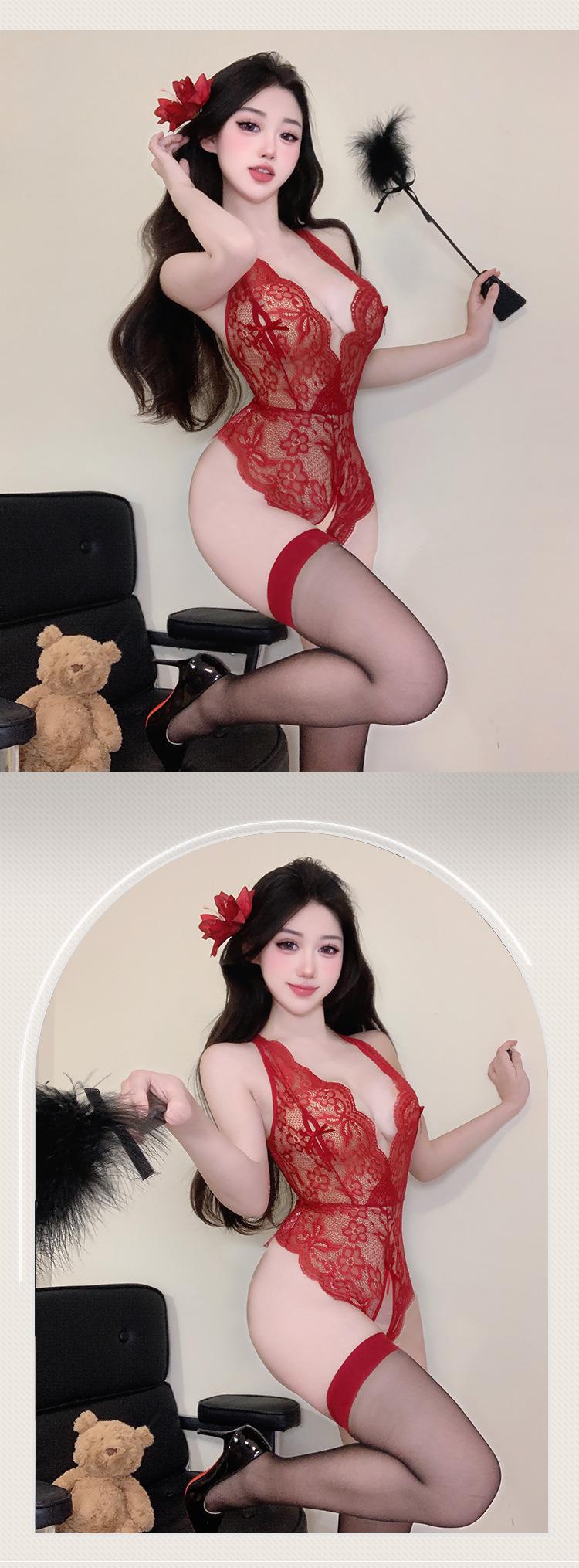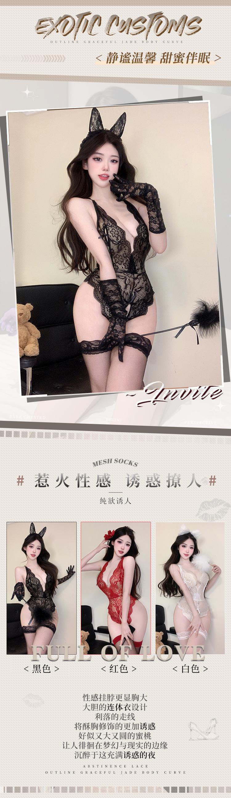 Lencería sexy de encaje con tentación, mono abierto y hueco, uniforme de tentación para mujer, traje gratis 2116