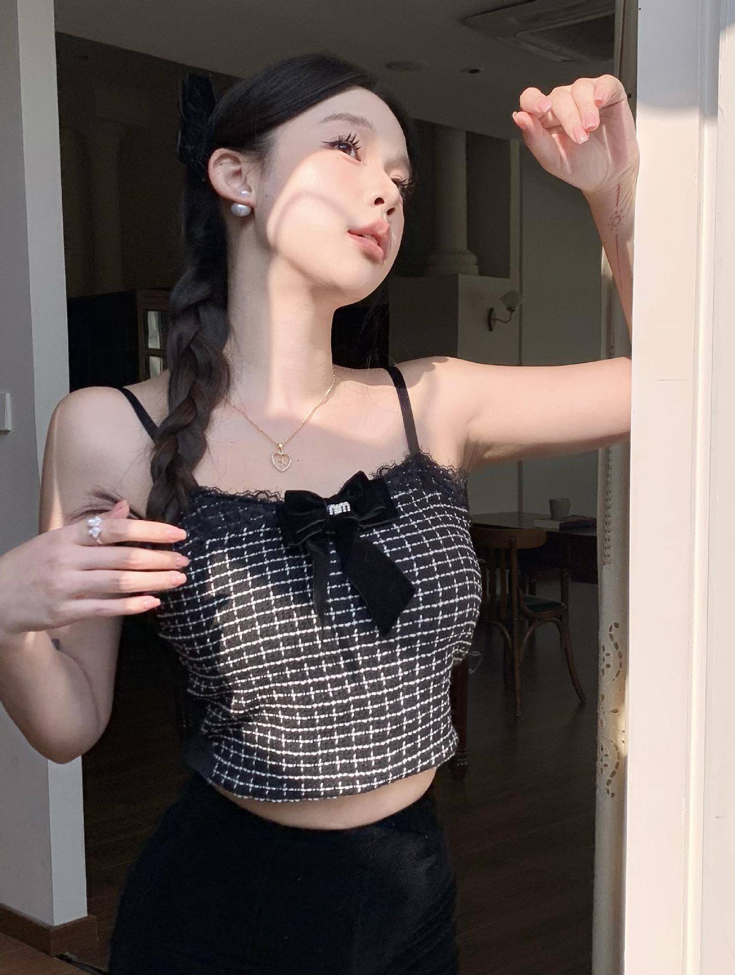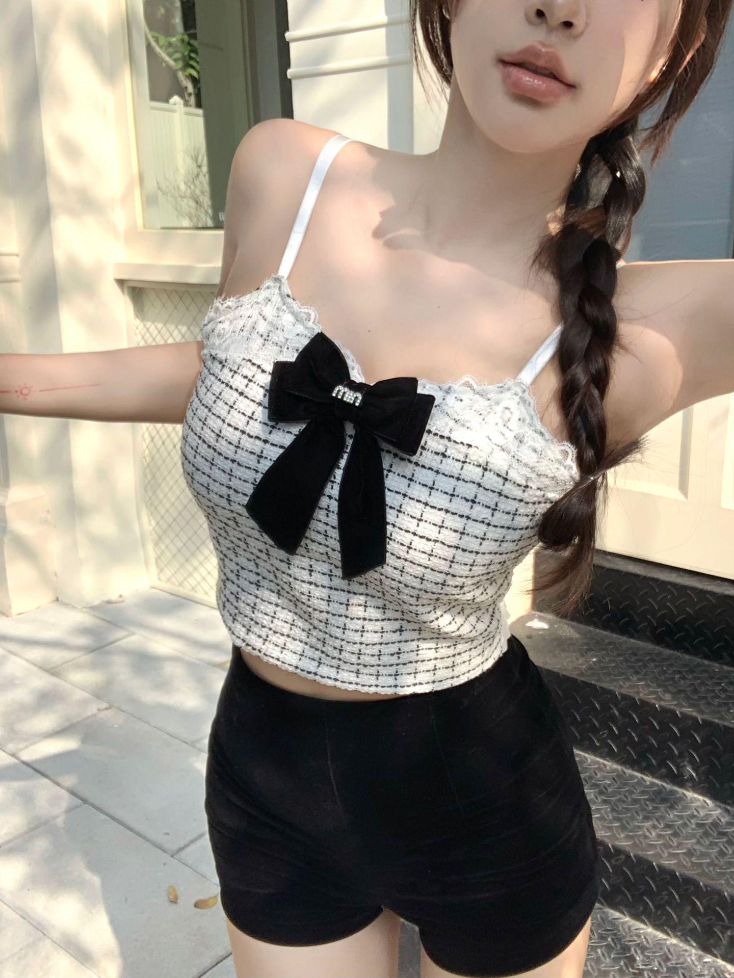 Camisola con lazo estilo Chanel Pure Desire para mujer, estilo Spice Girl, con espalda hermosa, corte entallado y diseño adelgazante, sin mangas