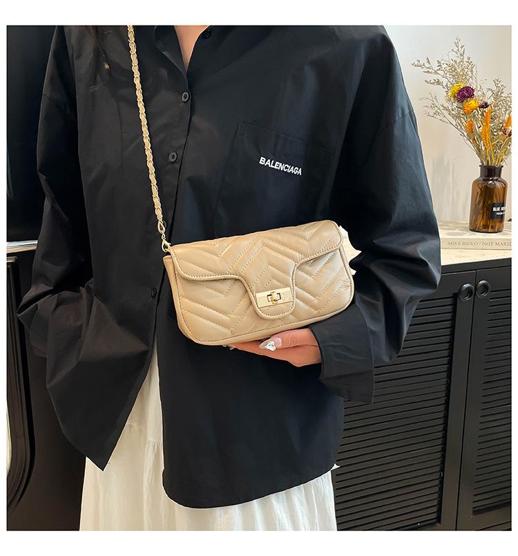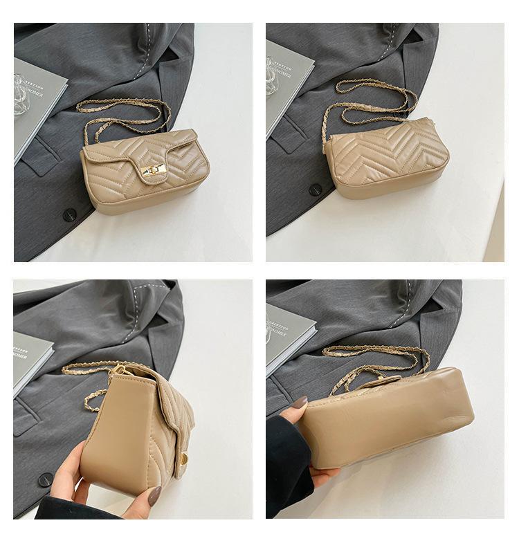 Bolso Popular 2025 Bolso Cuadrado Pequeño Bordado de Cadena Estilo Coreano para Mujer Moda Versátil Cierre de Hebilla de Bloqueo Bolso Bandolera de Hombro